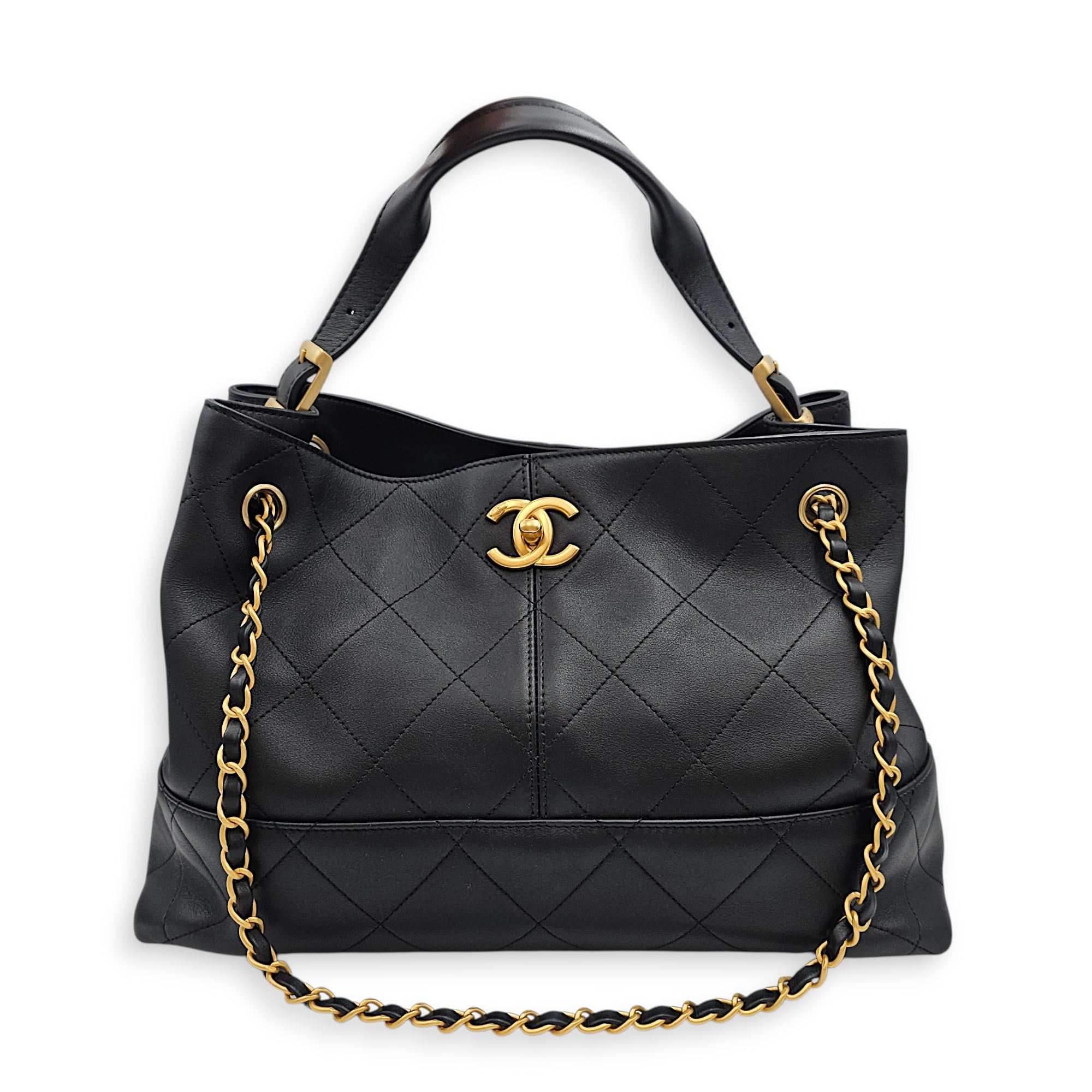 25 A Shopping Black Shoulder Bag in Calfskin Gold hardware