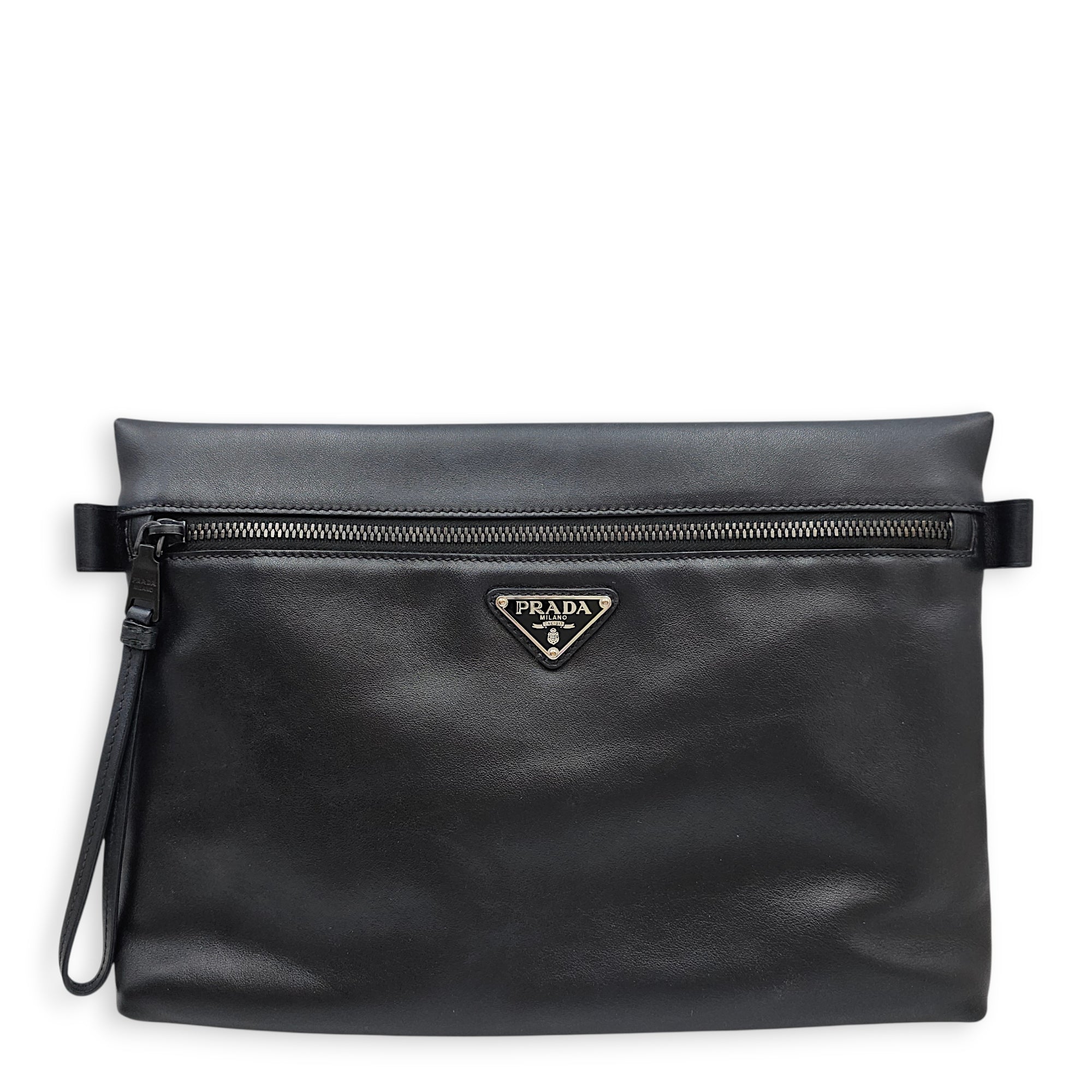 Black 32cm Clutch in Calfskin Ruthenium-finish Brass hardware