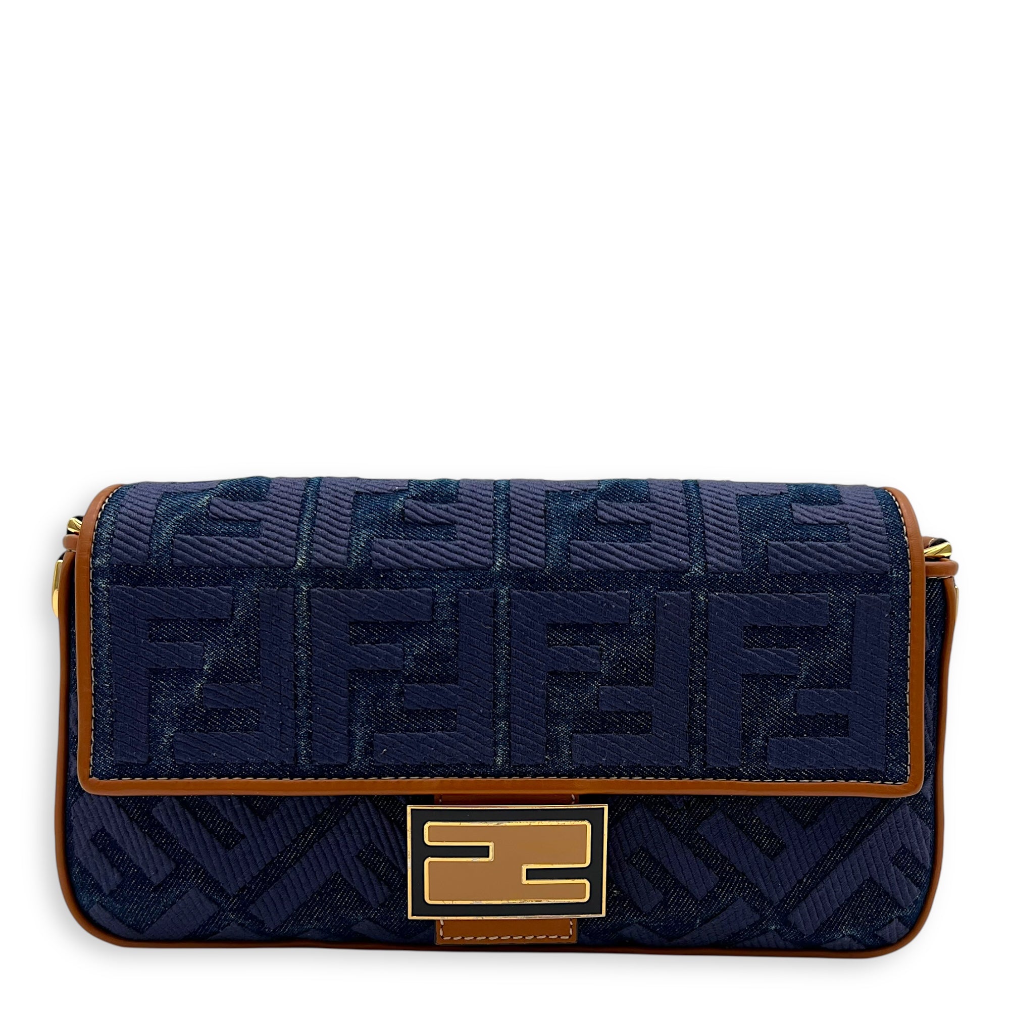 Baguette Crossbody Bag Blue in Denim, Gold hardware