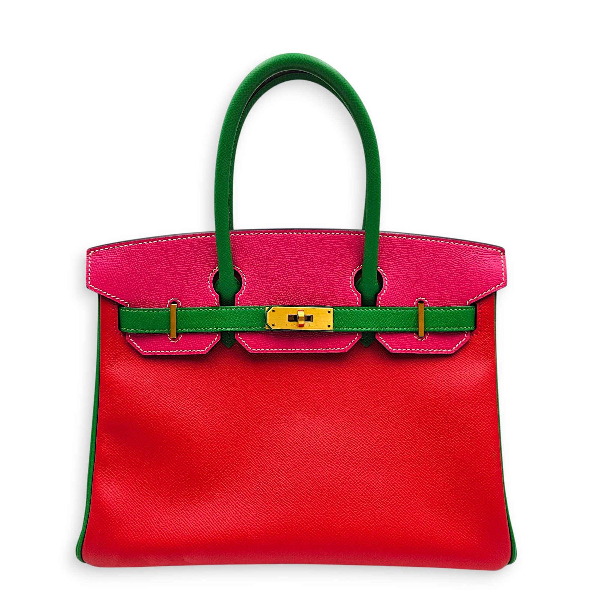 Birkin HSS 30 Rose Tyrien/Bamboo/Bougainvillea in Epsom, Brushed Gold hardware