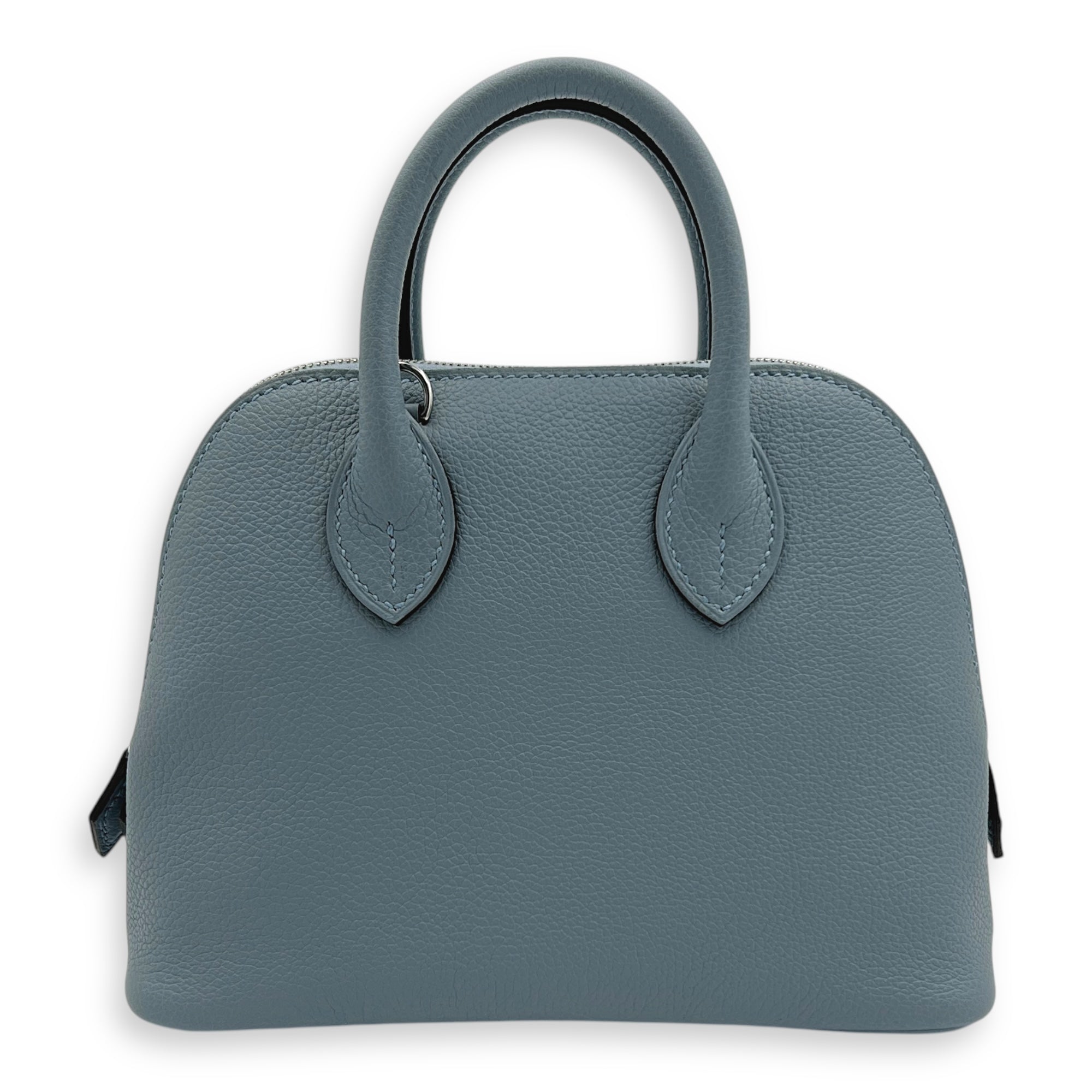 Bolide 1923 Mini Bleu Lin Top Handle Bag in Evercolor, Palladium hardware