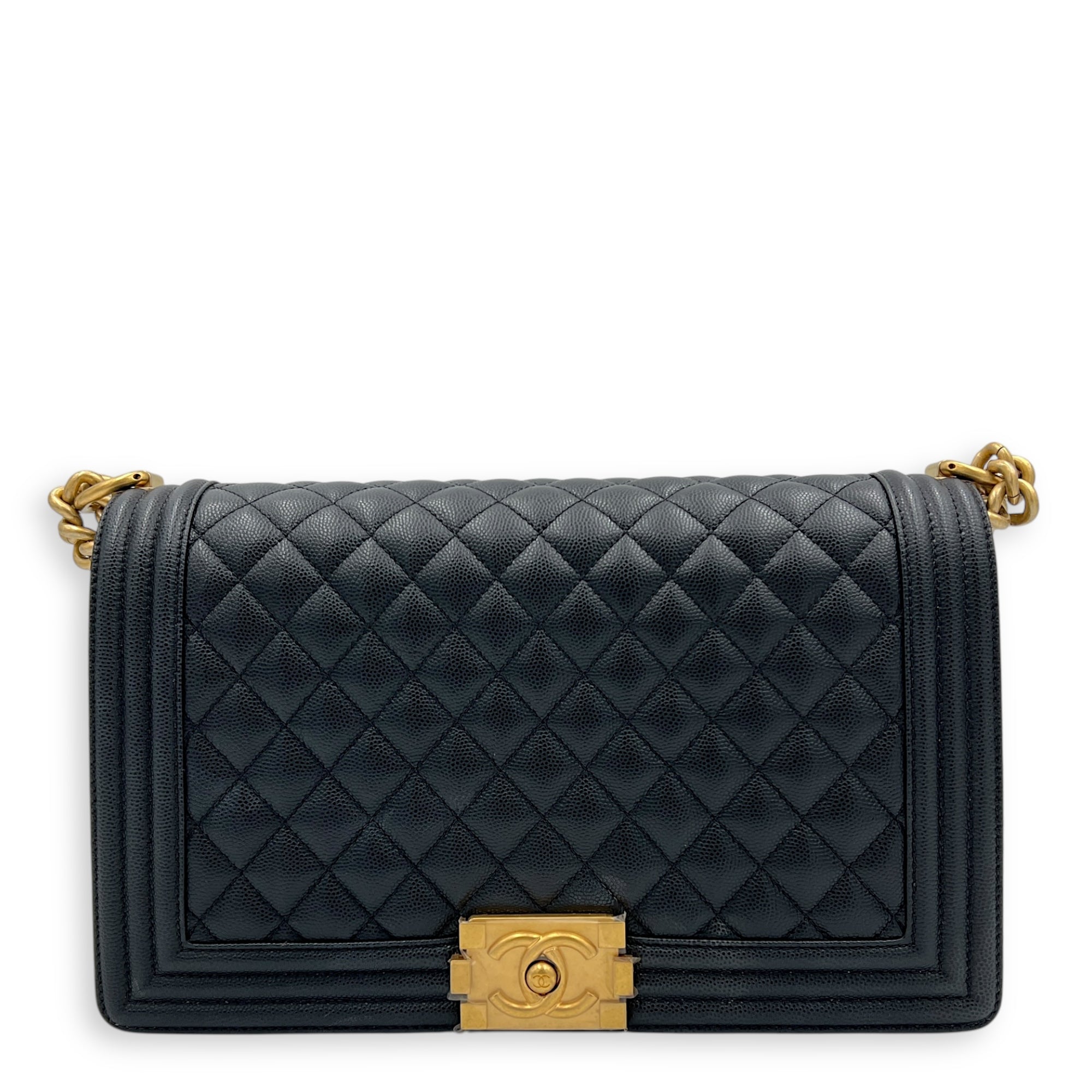 Boy Large Black Shoulder Bag in Caviar Leather, Gold hardware