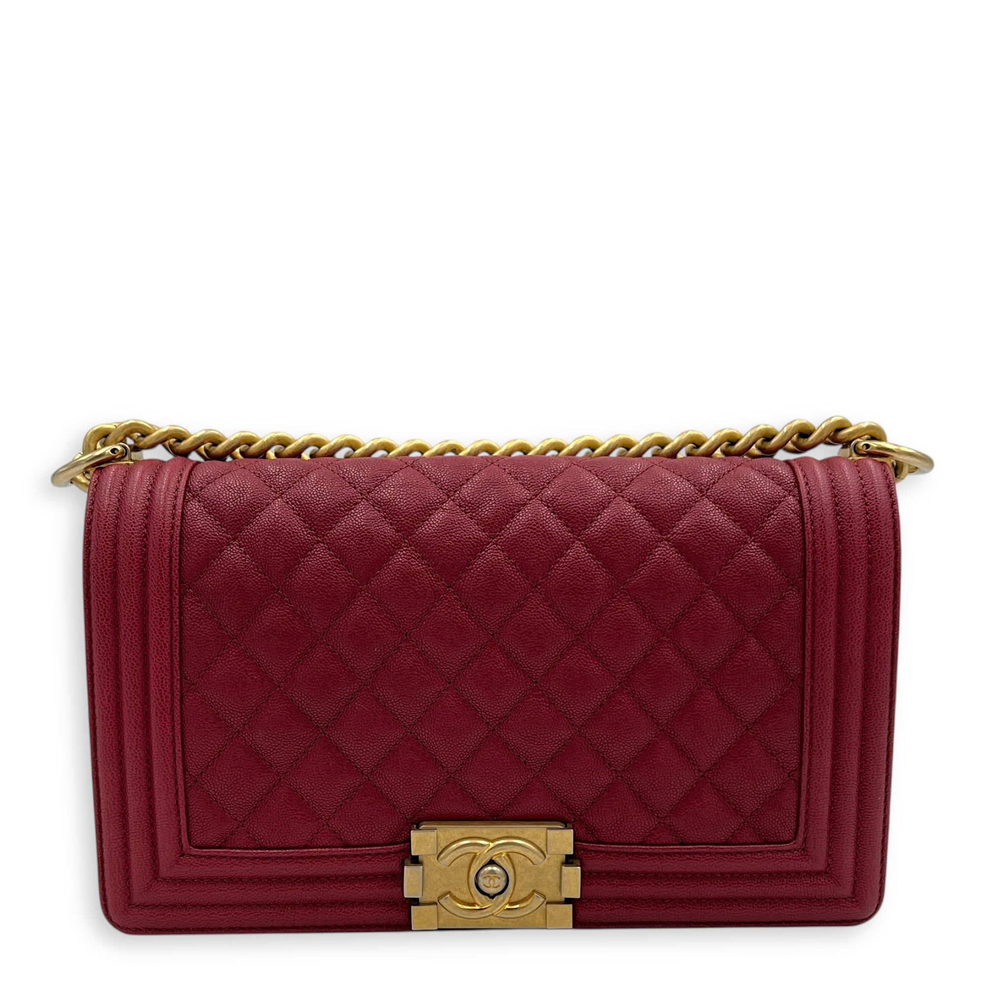 Boy Medium Pink Crossbody Bag in Caviar Leather, Gold hardware