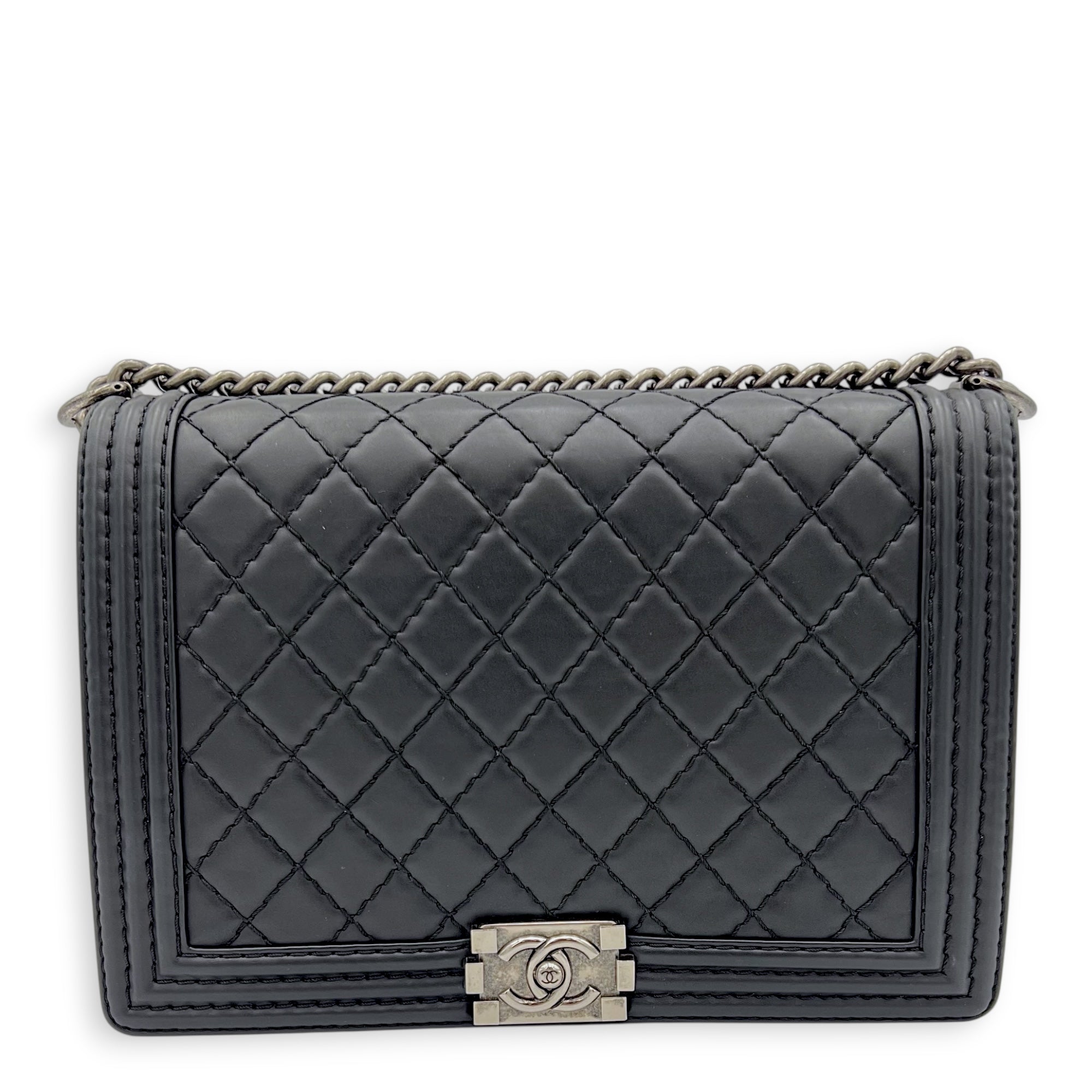 Boy Shoulder Bag Medium Black in Calfskin, Ruthenium hardware