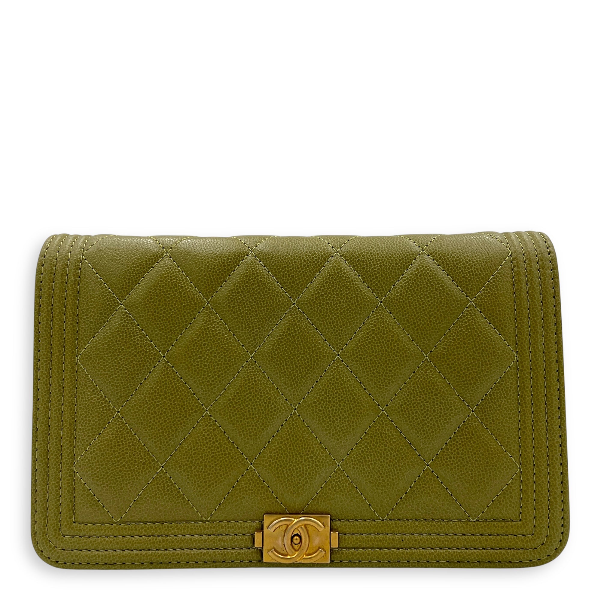 Boy Wallet On Chain Green in Caviar Leather, Gold hardware