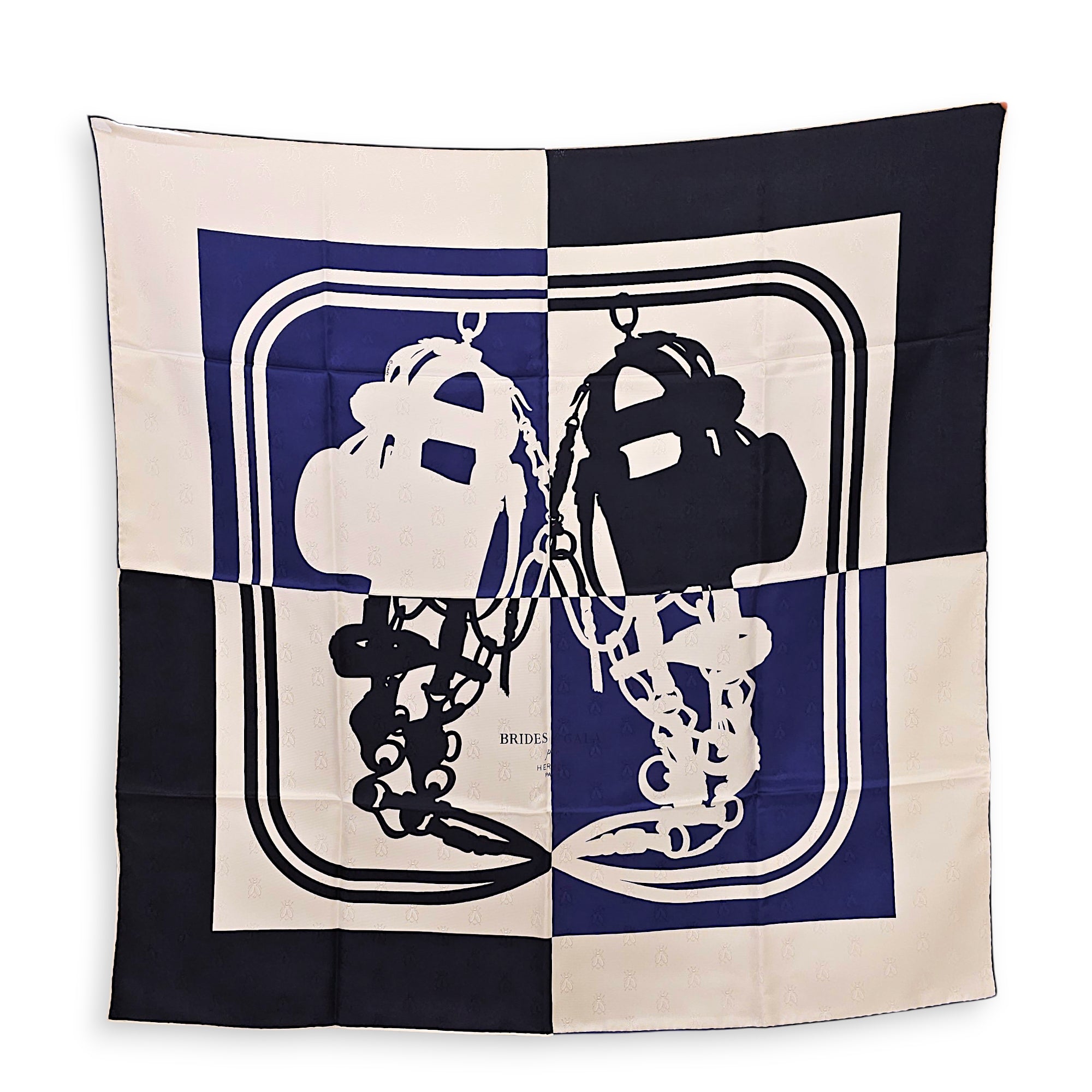 Brides De Gala Quadri Tattoo 90 Black/Blanc/Blue Scarf in Silk