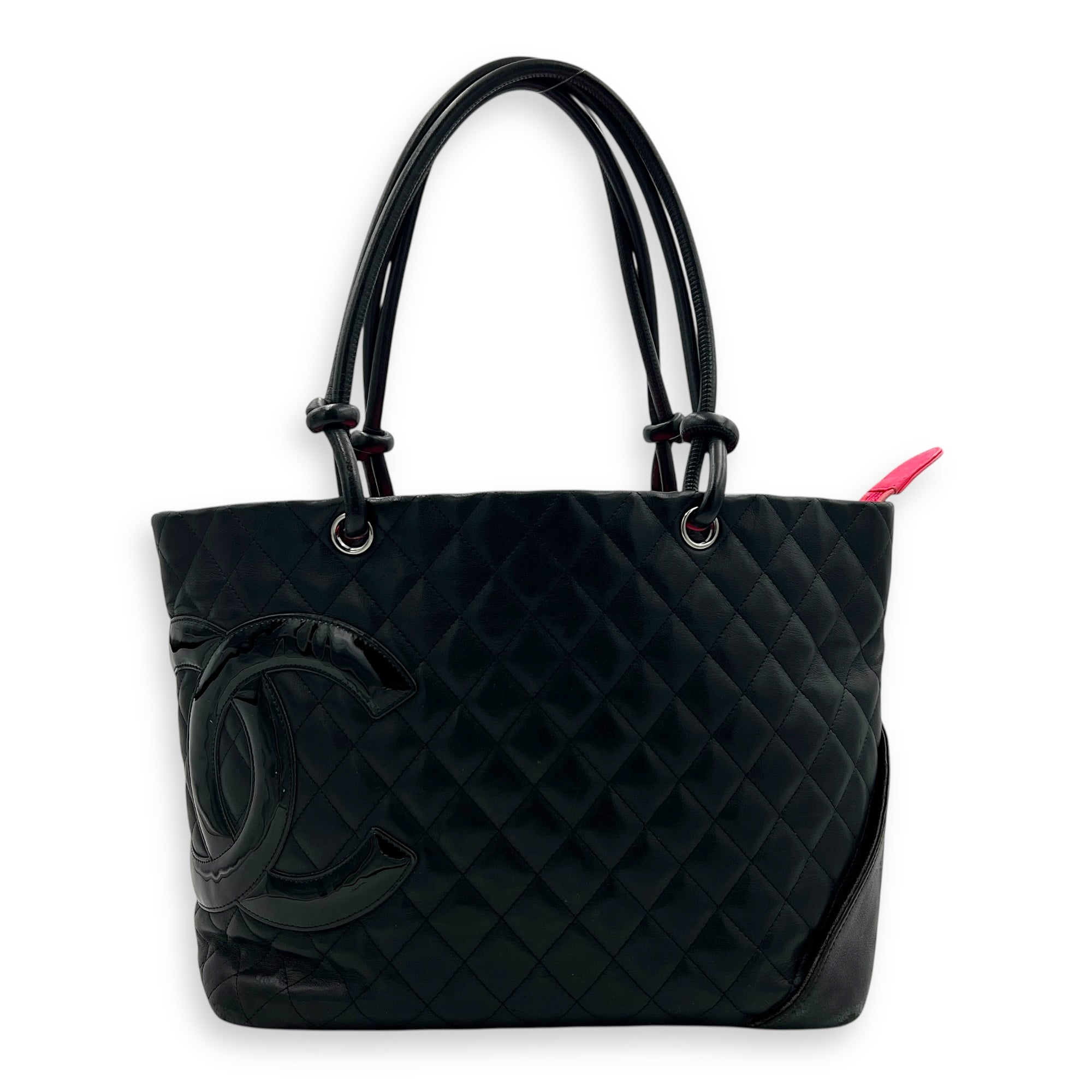 Cambon Tote Bag Black in Lambskin, Silver hardware