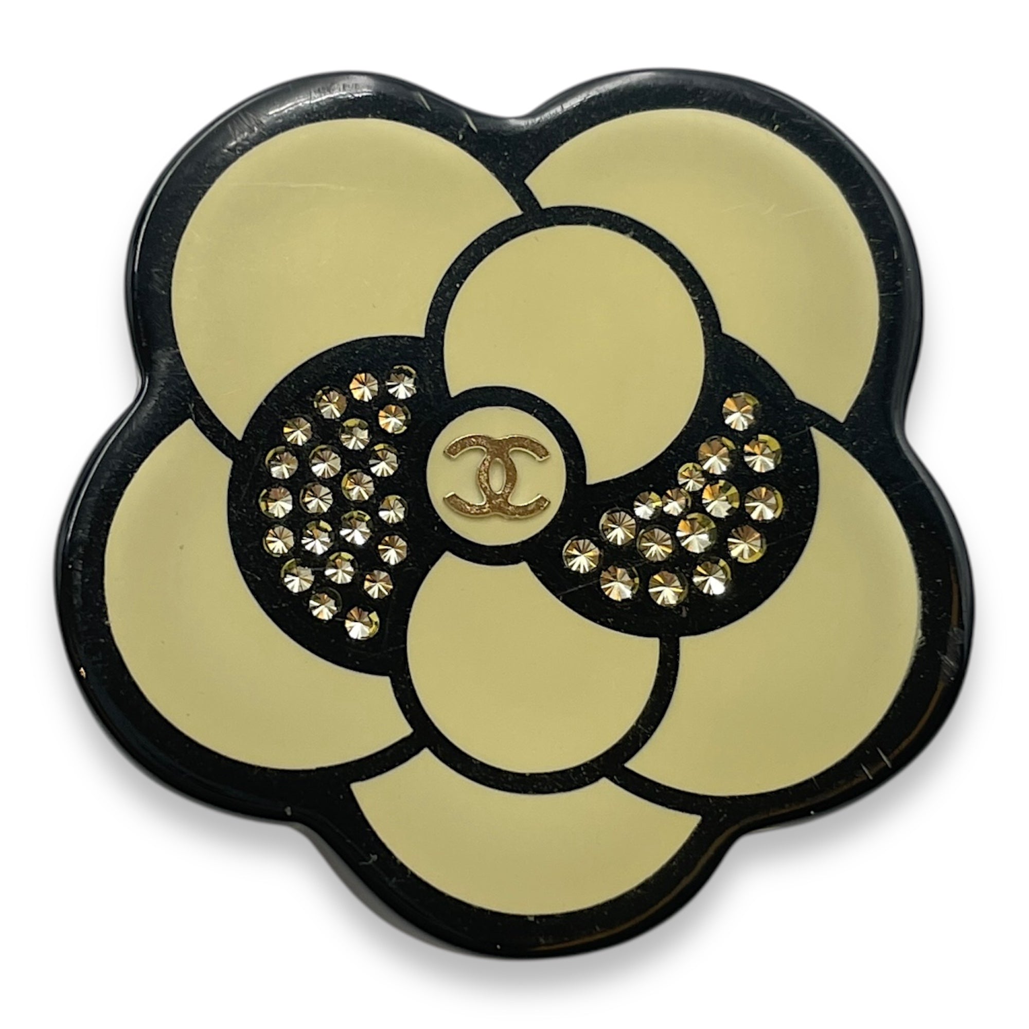Camelia Pin Black/White Brooch in Resin, Gold hardware