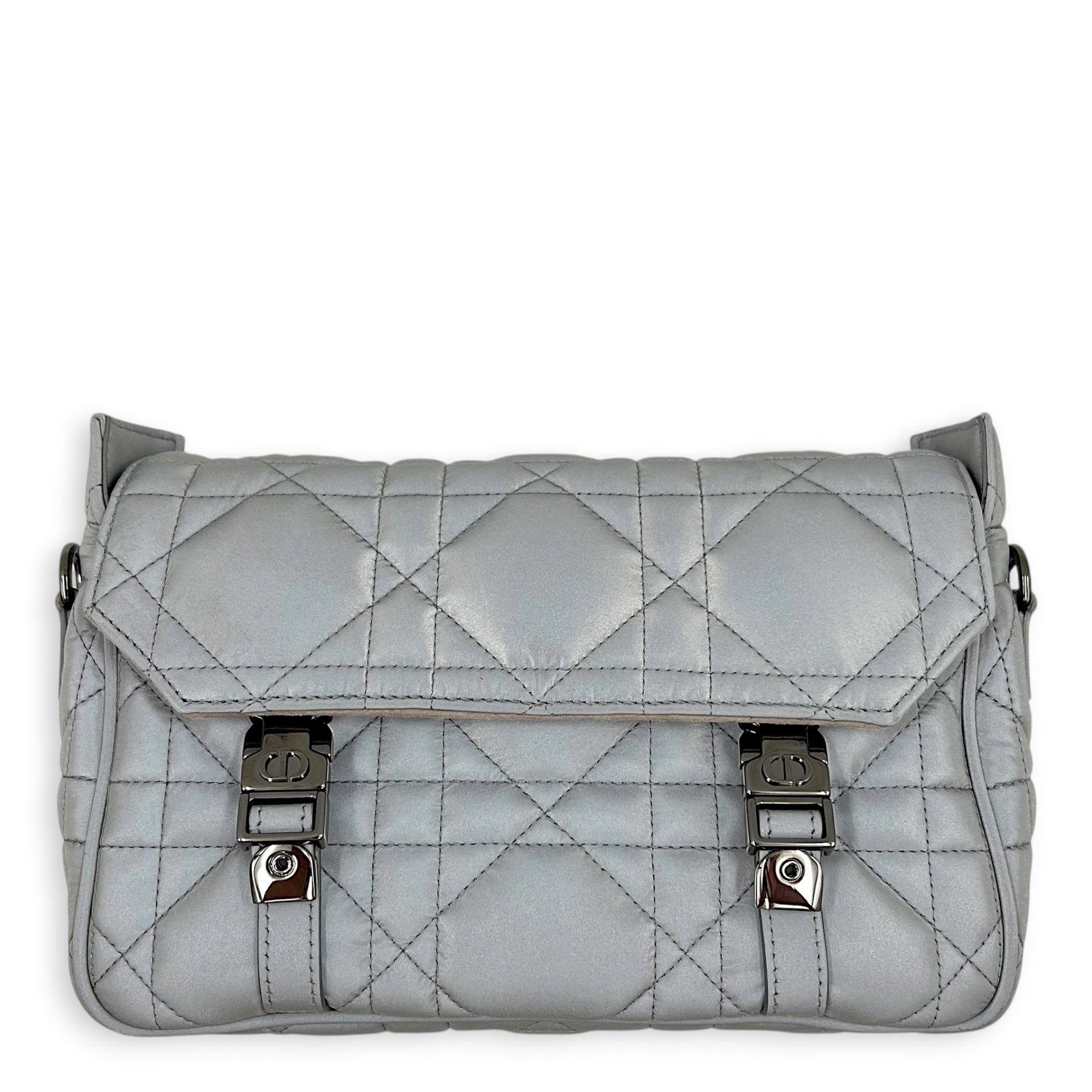 Cannage Messenger Grey in Fabric, Silver hardware