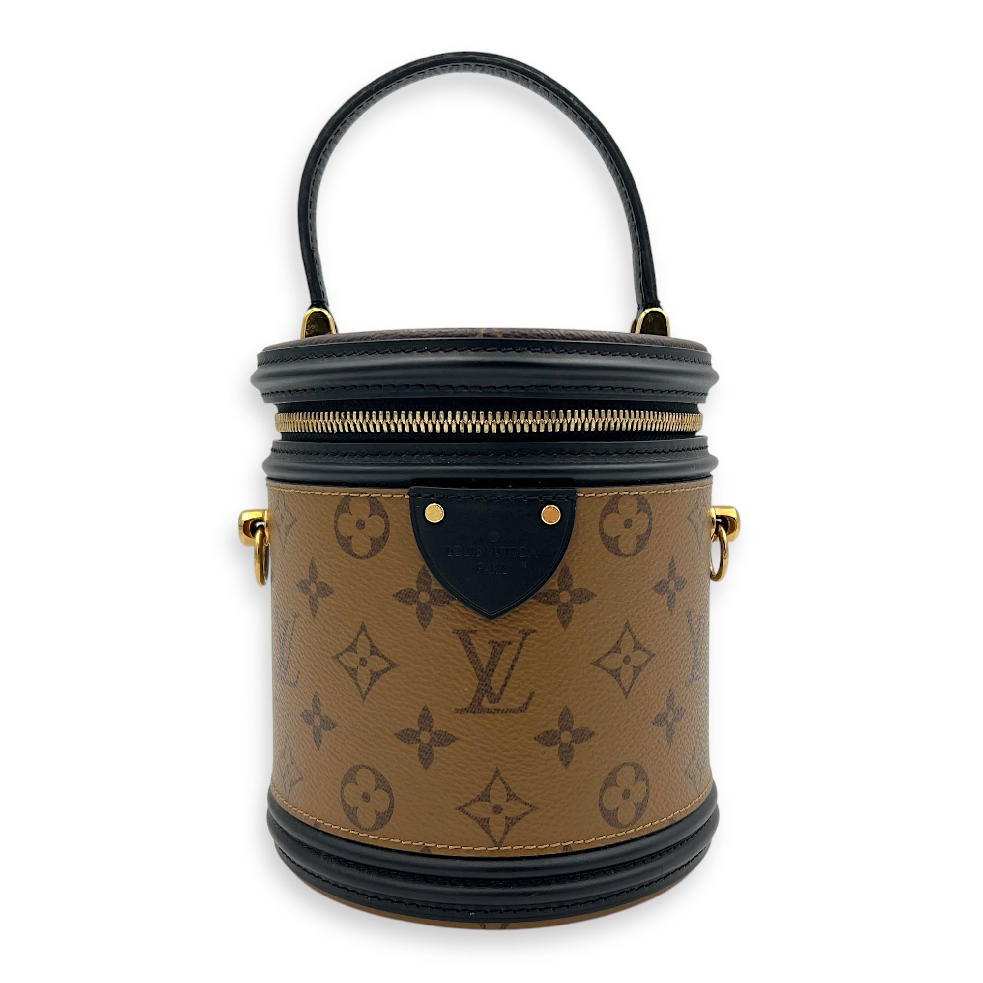 Cannes Brown Bucket Bag in Monogram Coated Canvas, Gold hardware
