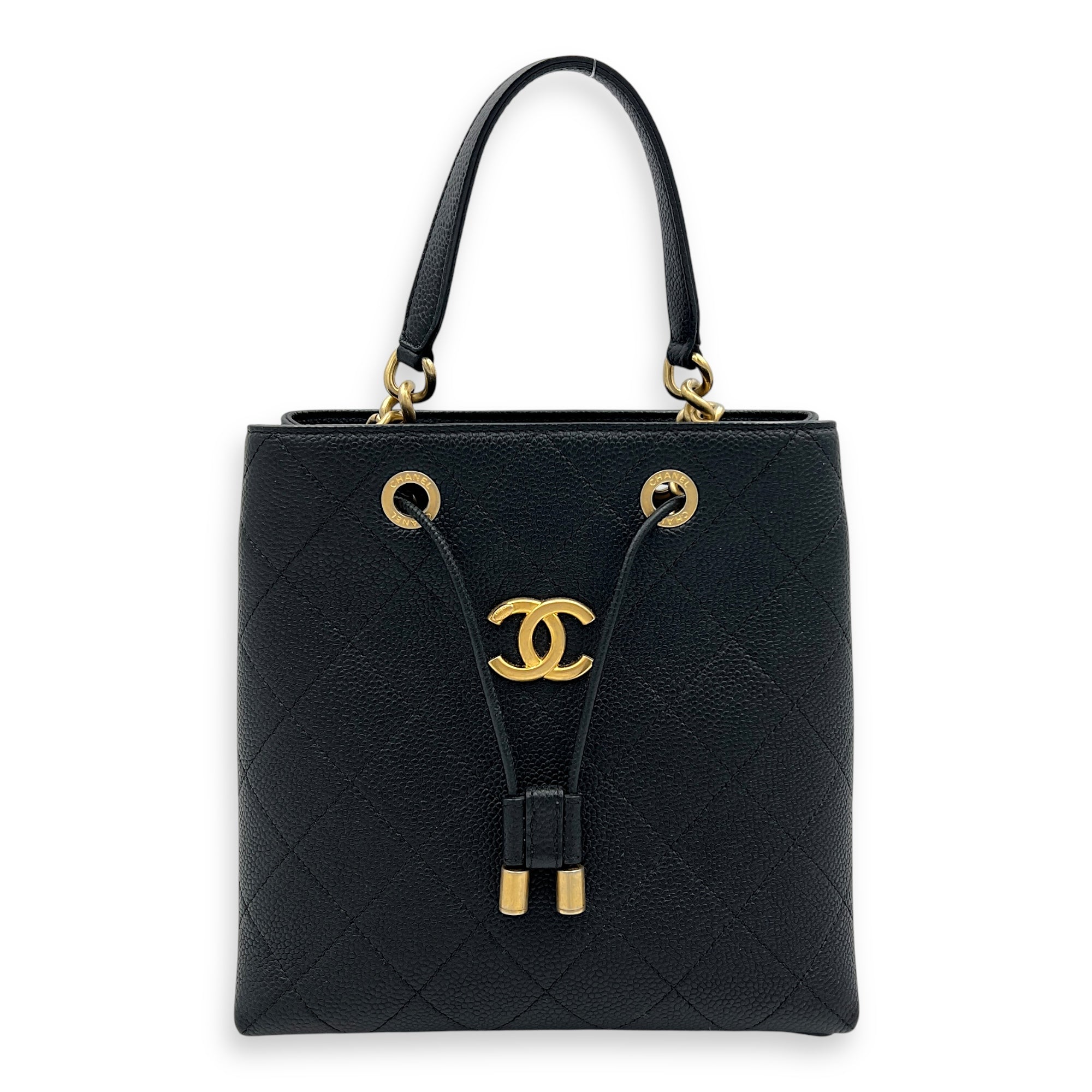 CC Bucket Bag Black in Caviar Leather, Gold hardware