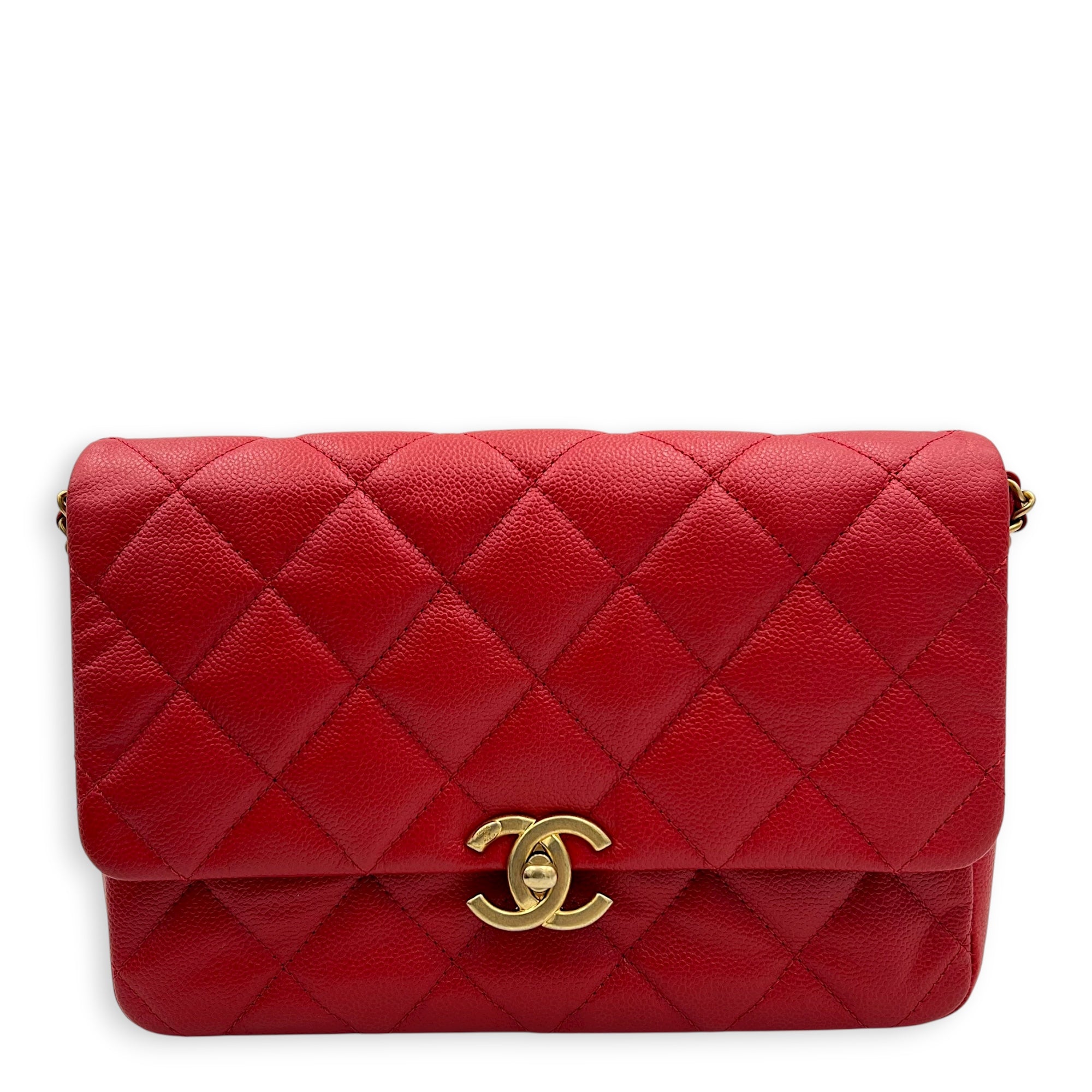 CC Quilted Shoulder Bag Red in Caviar Leather, Gold hardware