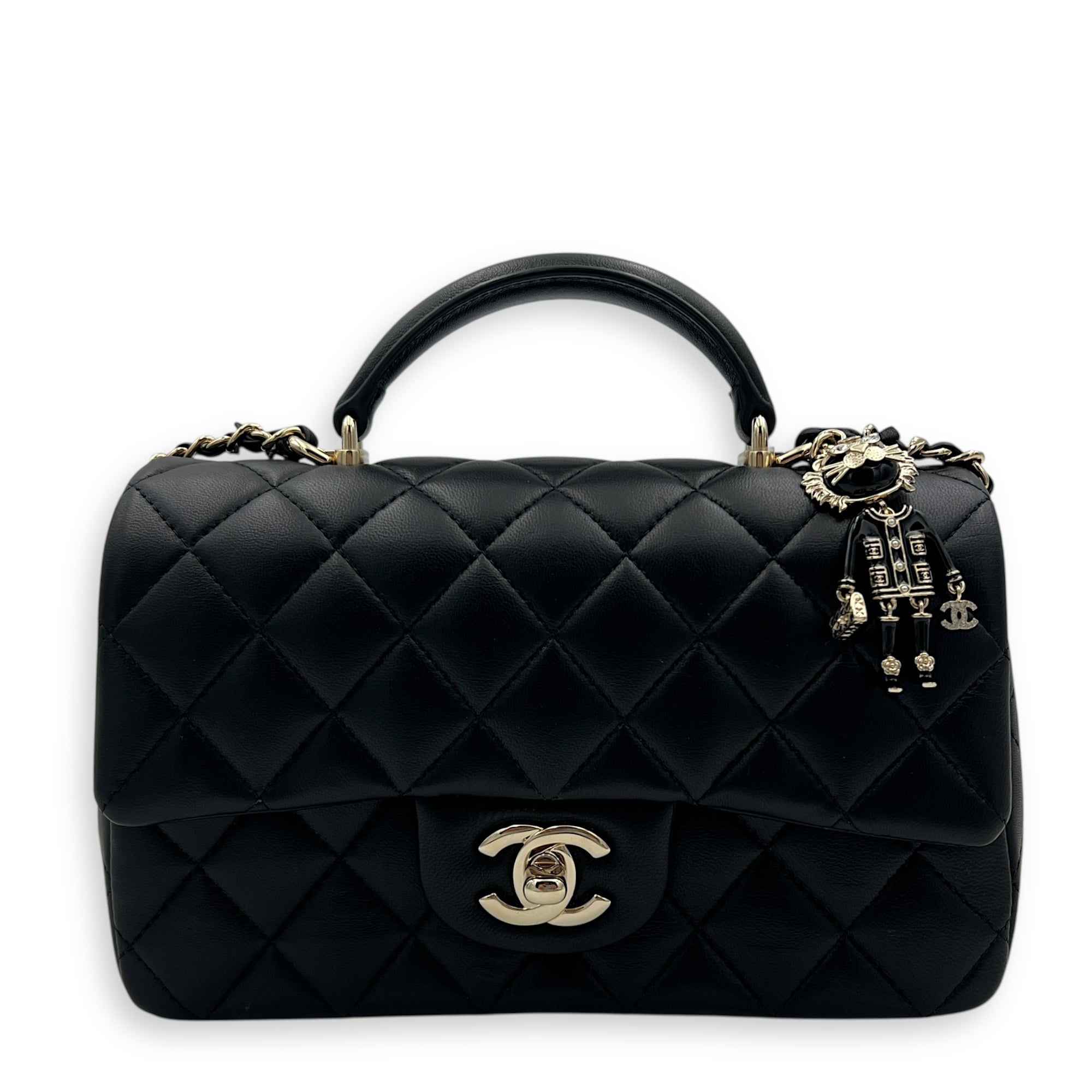 CC Rectangle Black Top Handle Bag in Lambskin, Gold hardware