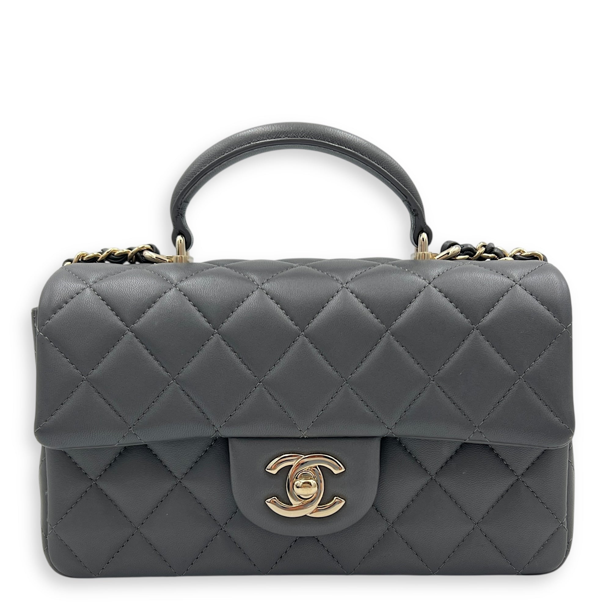 CC Rectangle Top Handle Bag Grey in Lambskin, Gold hardware
