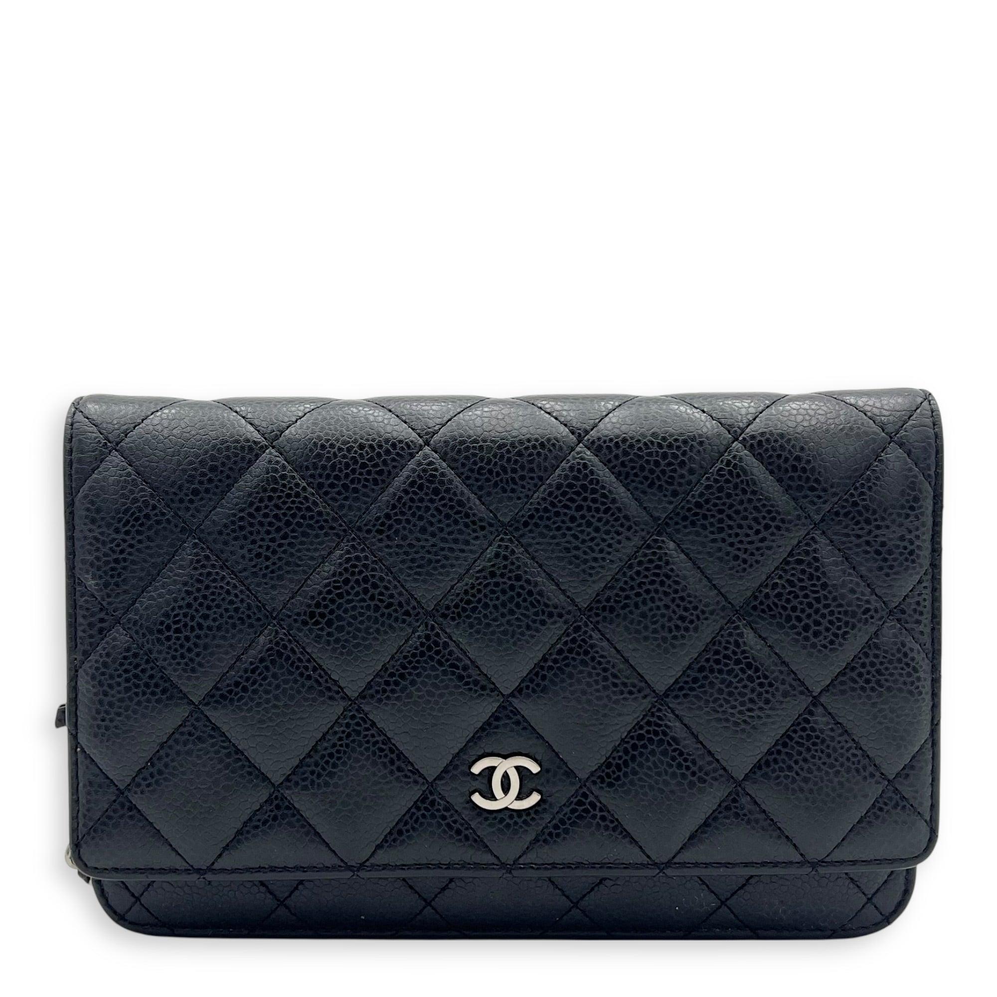 CC Wallet On Chain Black in Caviar Leather, Silver hardware
