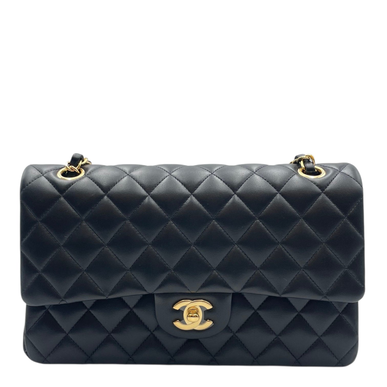 Classic Flap Medium Black Shoulder Bag in Lambskin Gold hardware