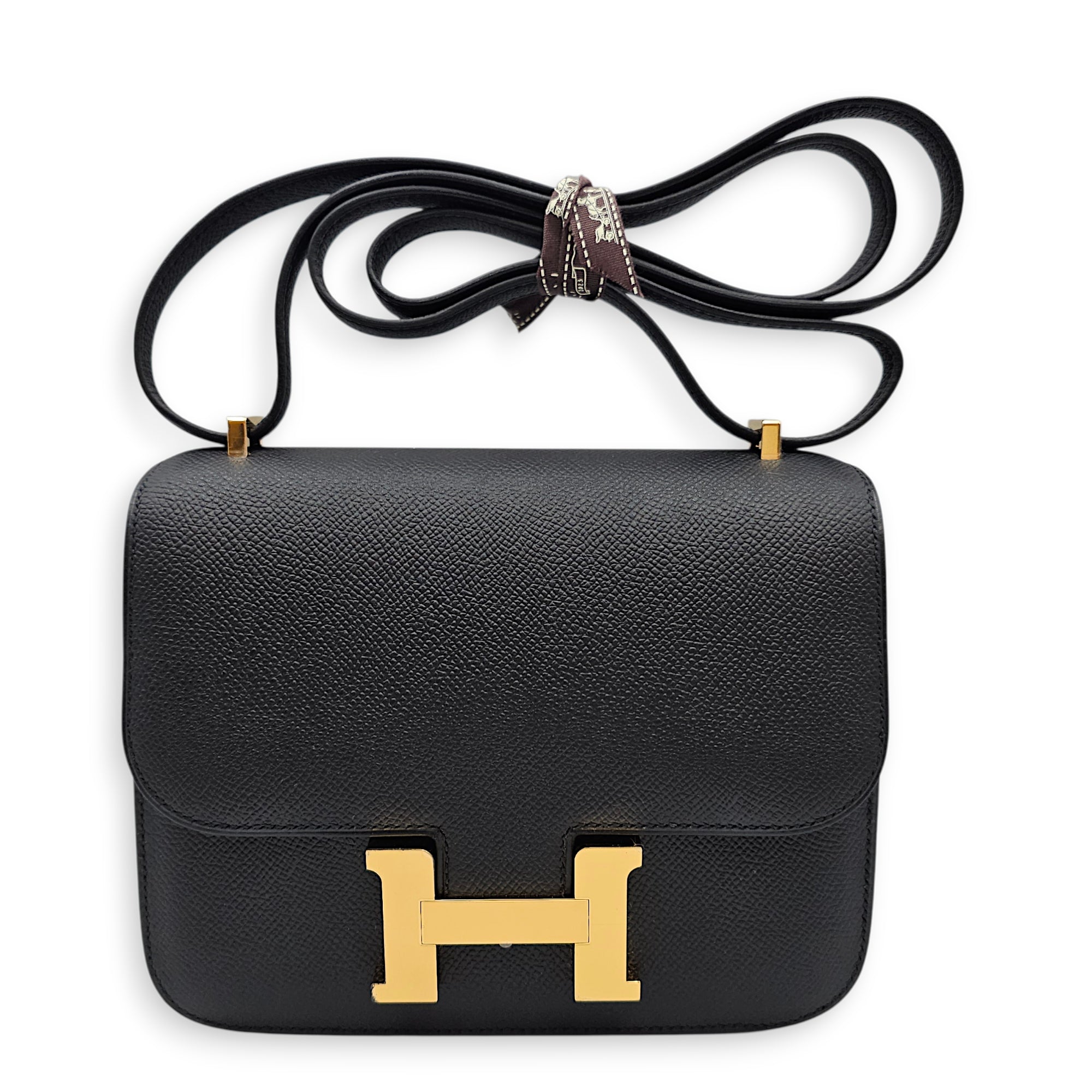 Constance Mirror 18 Black in Epsom Gold hardware CL2601-19003 2