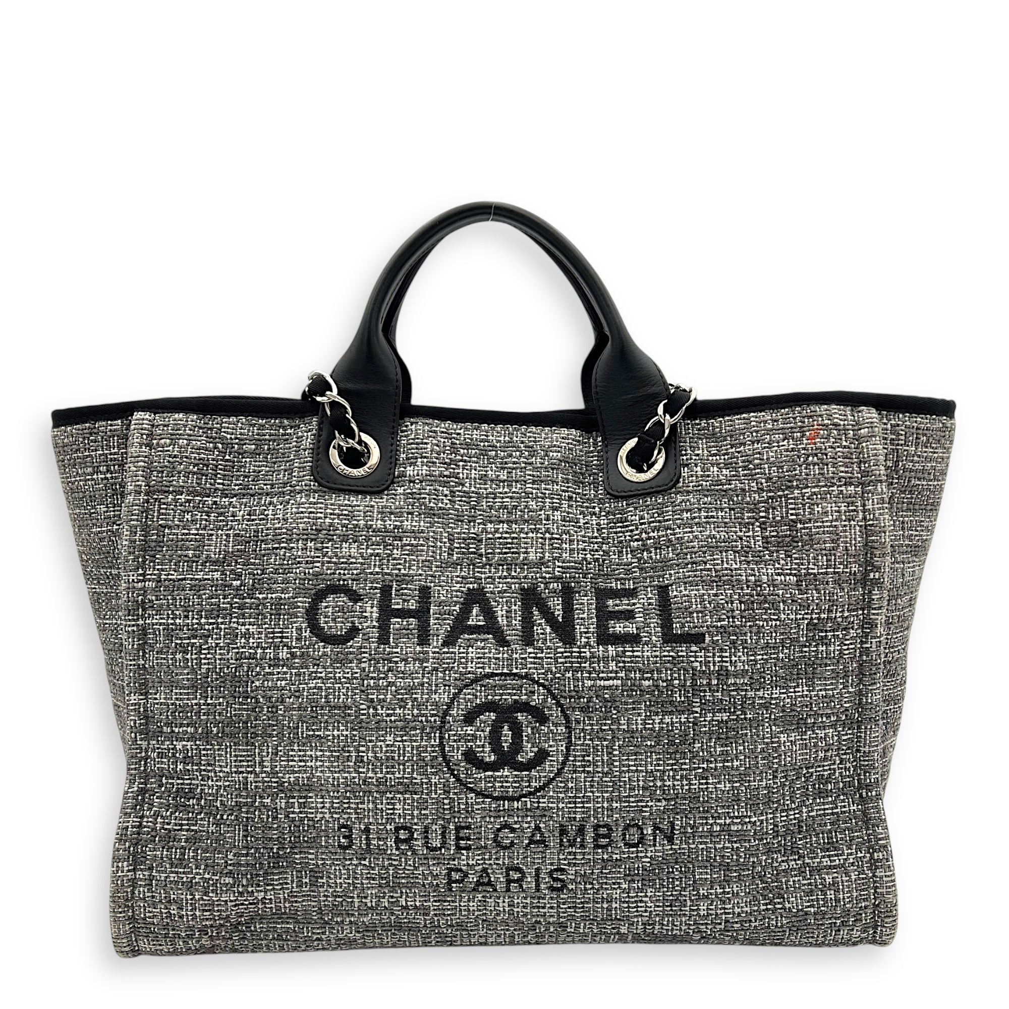 Deauville Tote Bag Grey in Tweed, Silver hardware