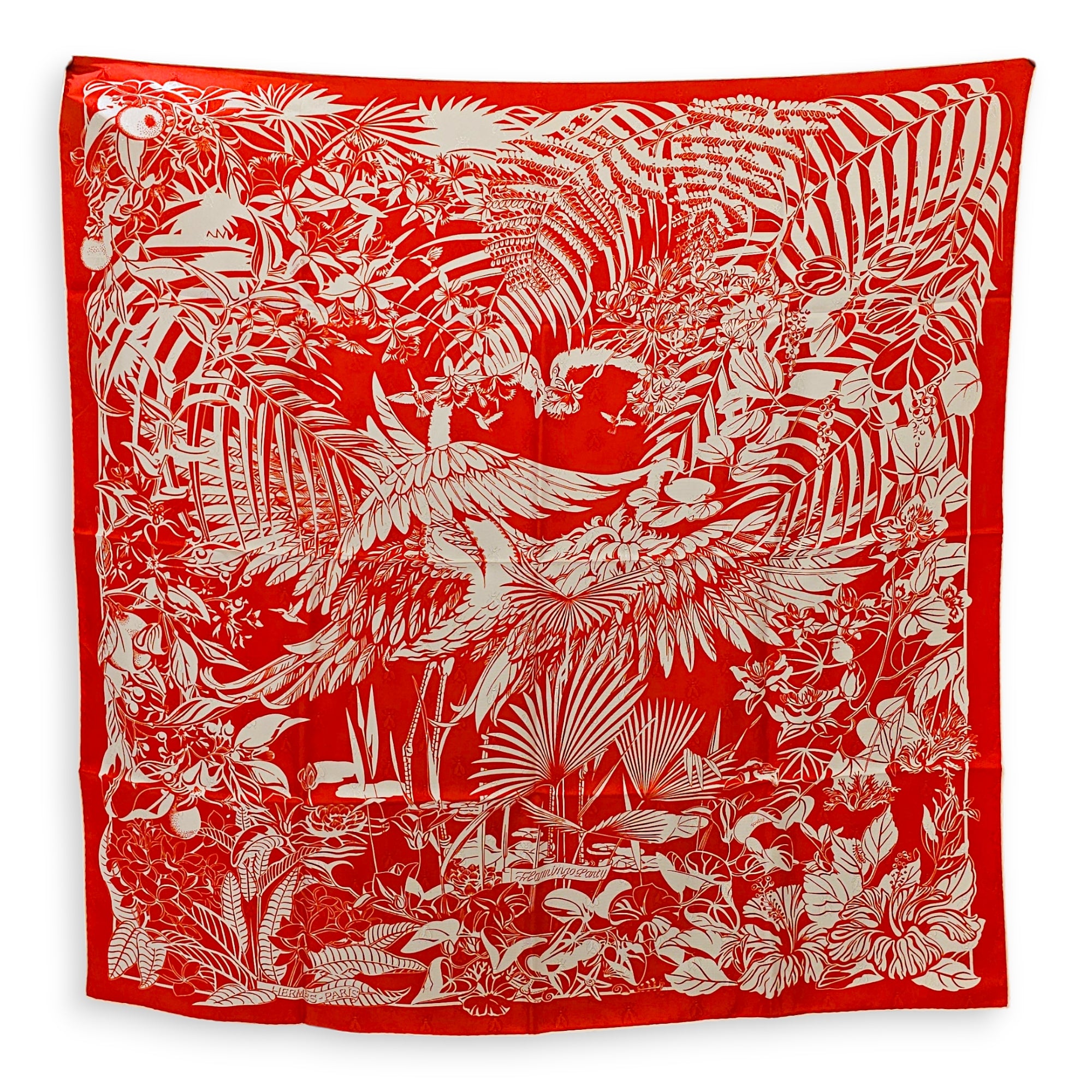Flamingo Party 90 Red Scarf in Silk