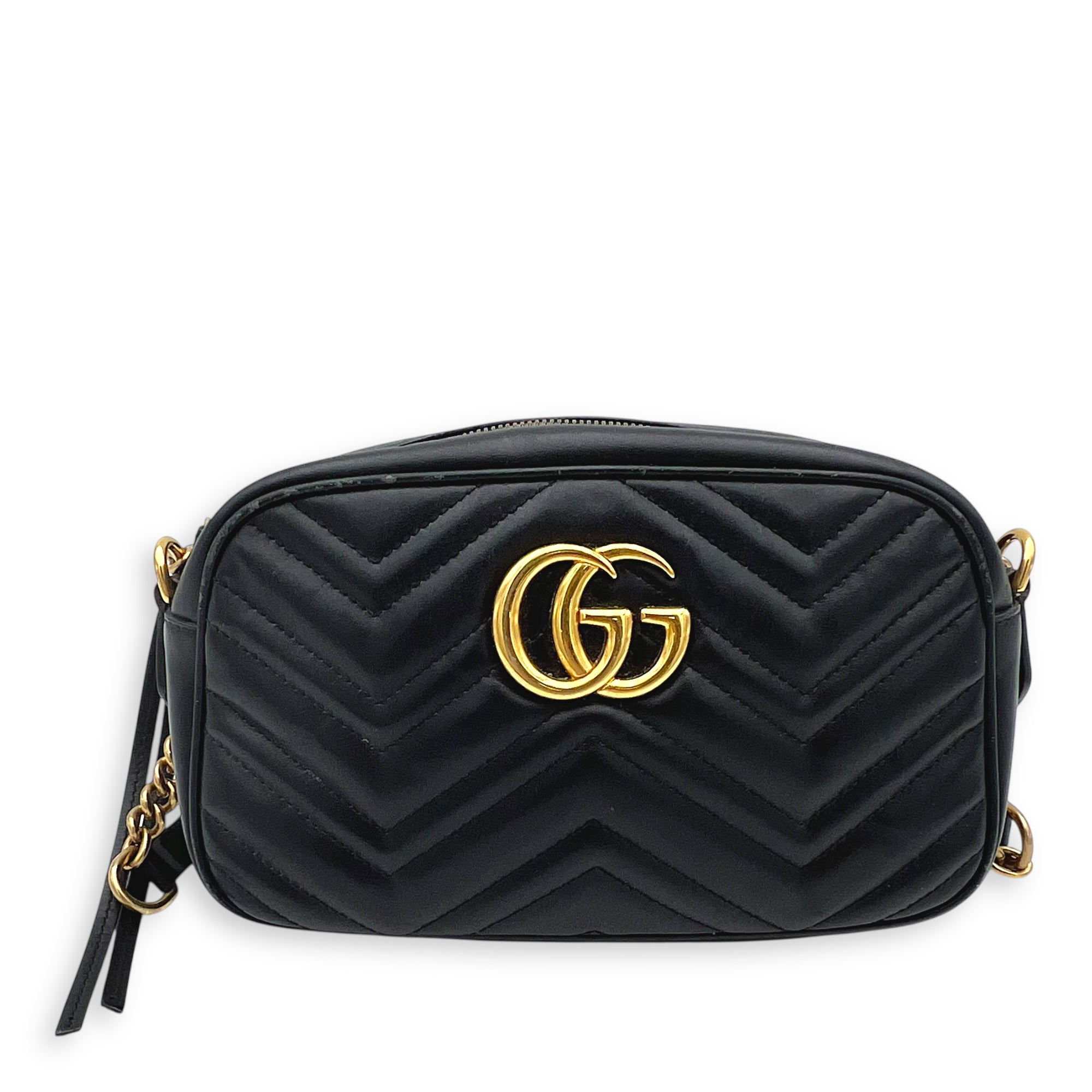 GG Marmont Crossbody Bag Black in Calfskin, Gold hardware