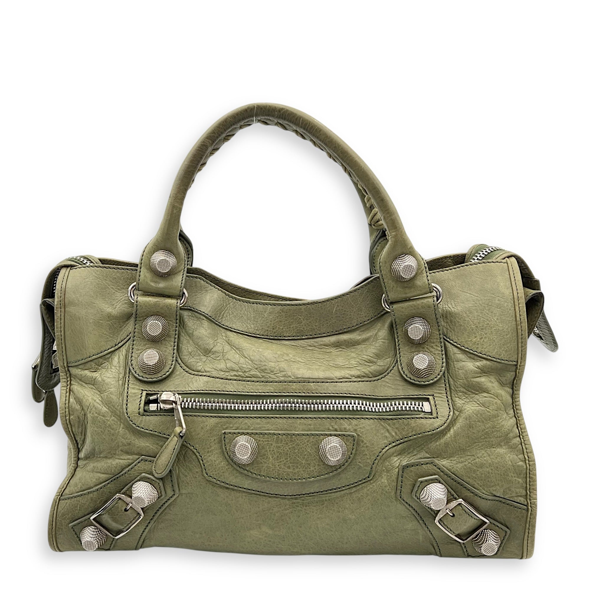 Giant City Shoulder Bag Green in Calfskin, Silver hardware