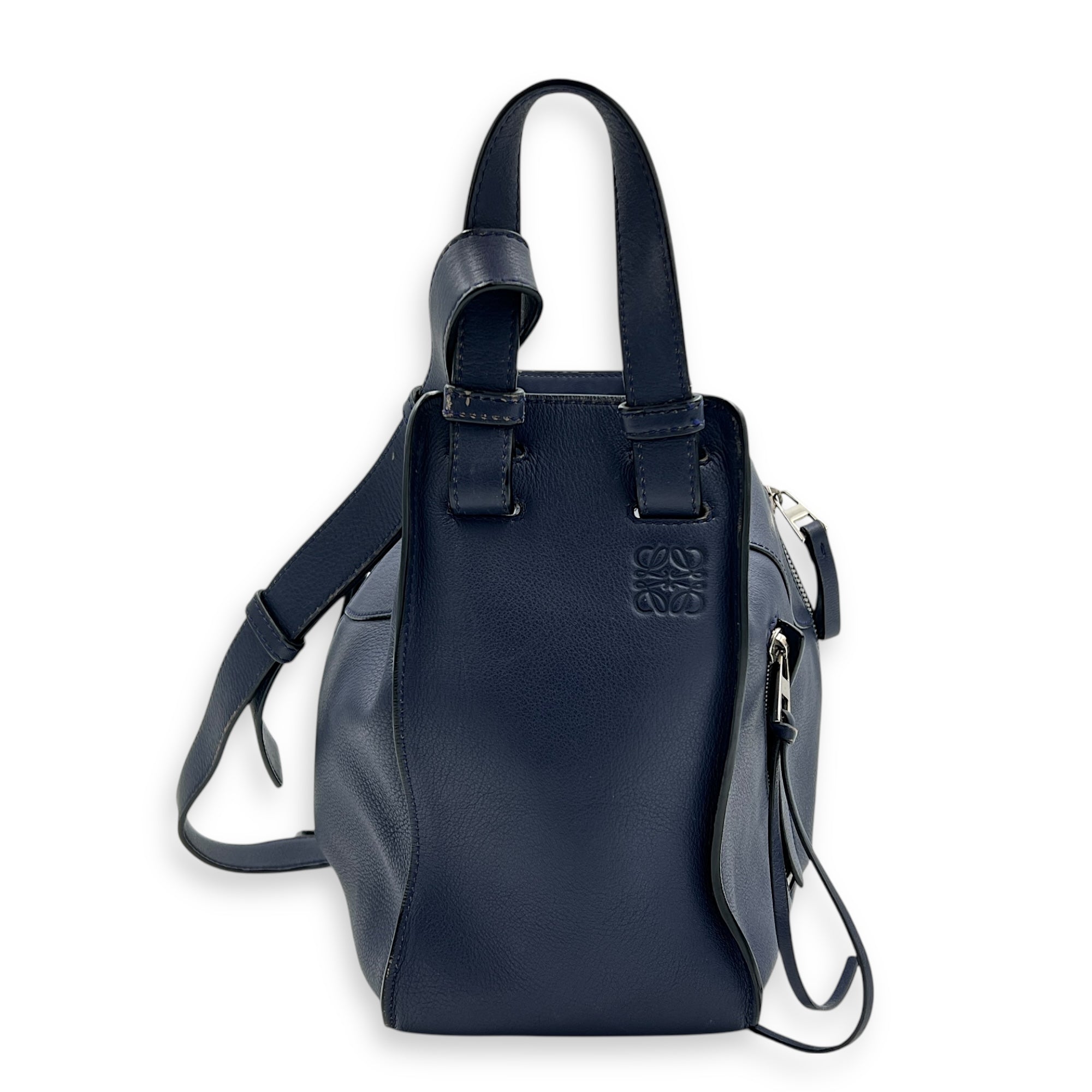 Hammock Small Blue Crossbody Bag in Calfskin, Silver hardware