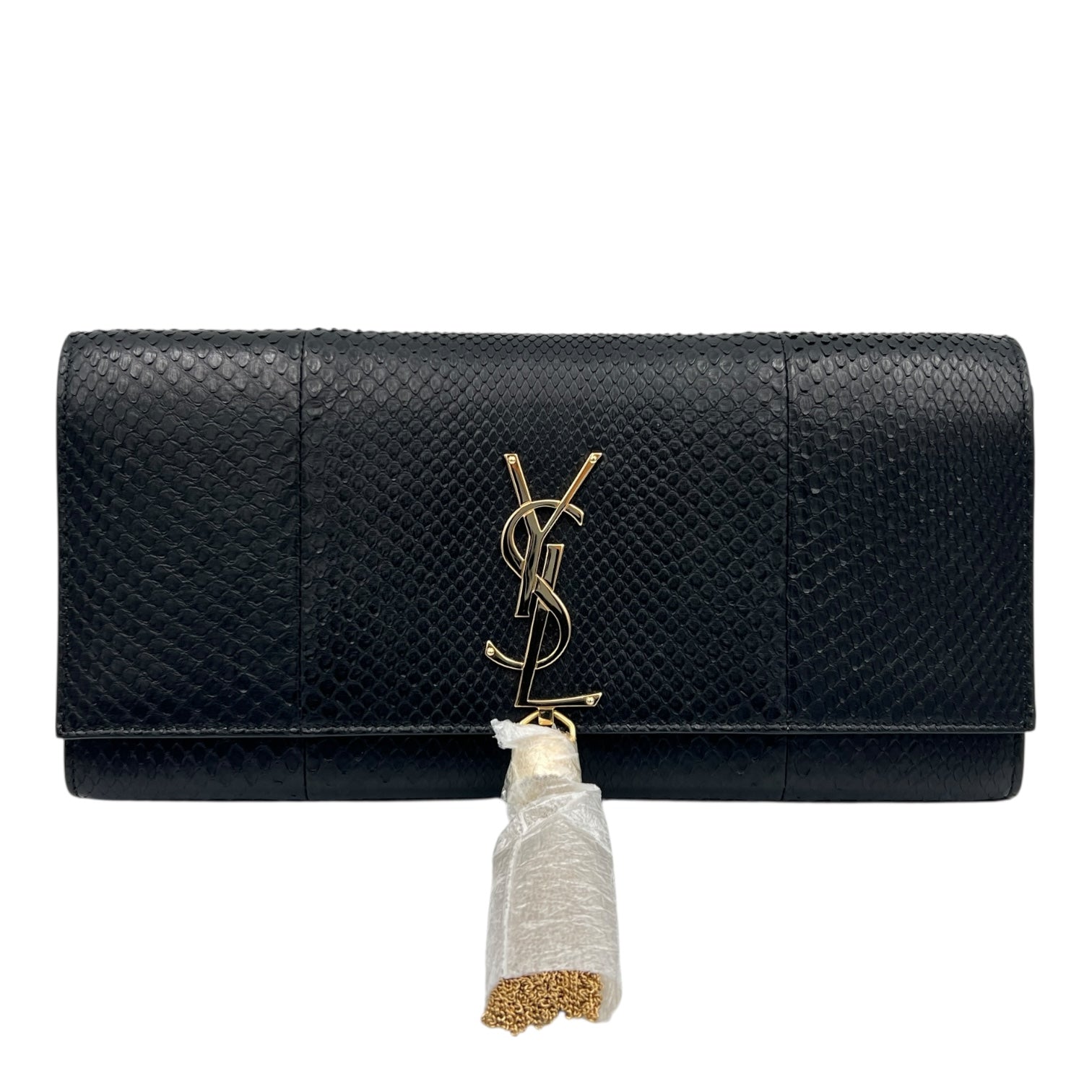 Kate Clutch Black in Python Leather, Gold hardware