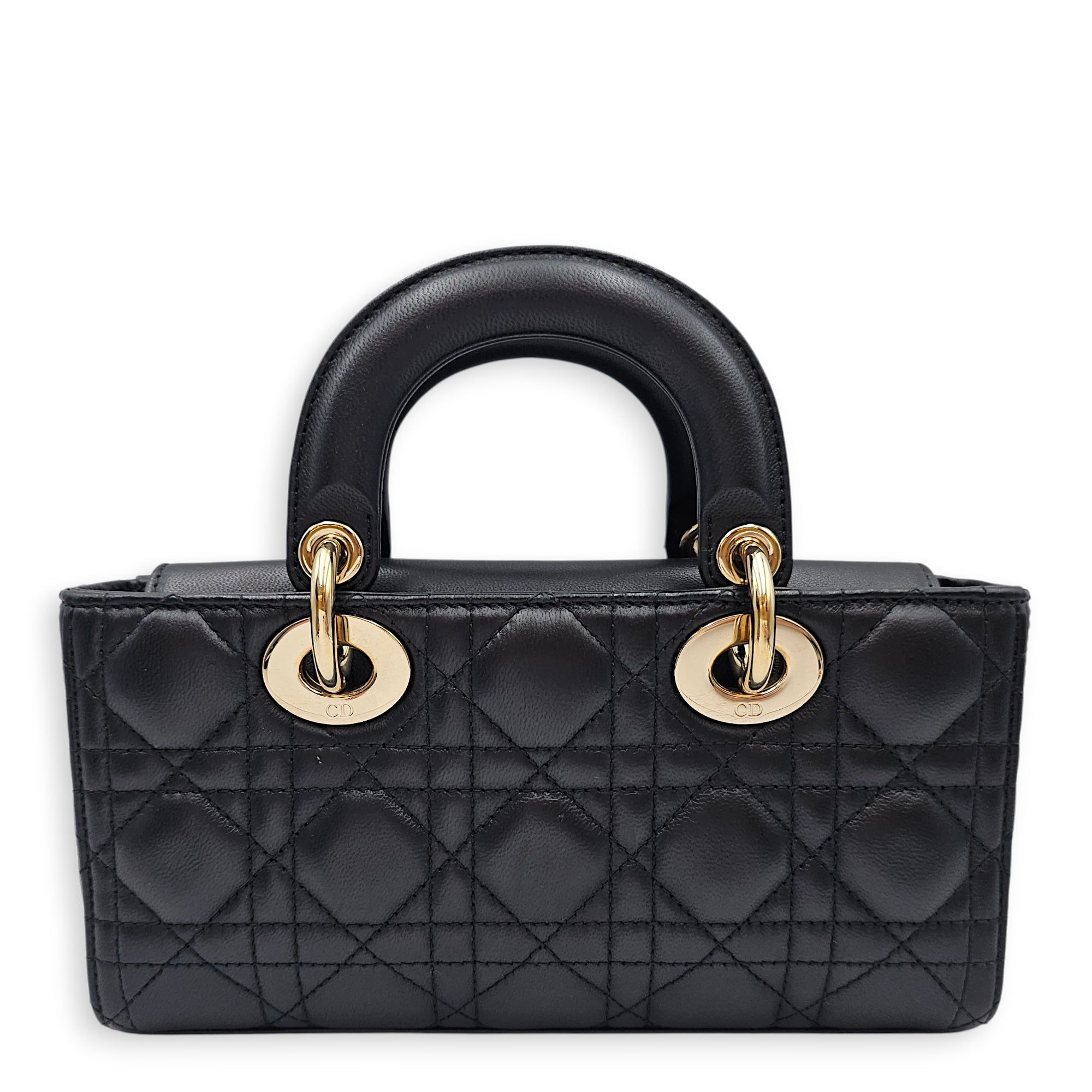 Lady D-Joy Small Black Crossbody Bag in Lambskin, Gold hardware