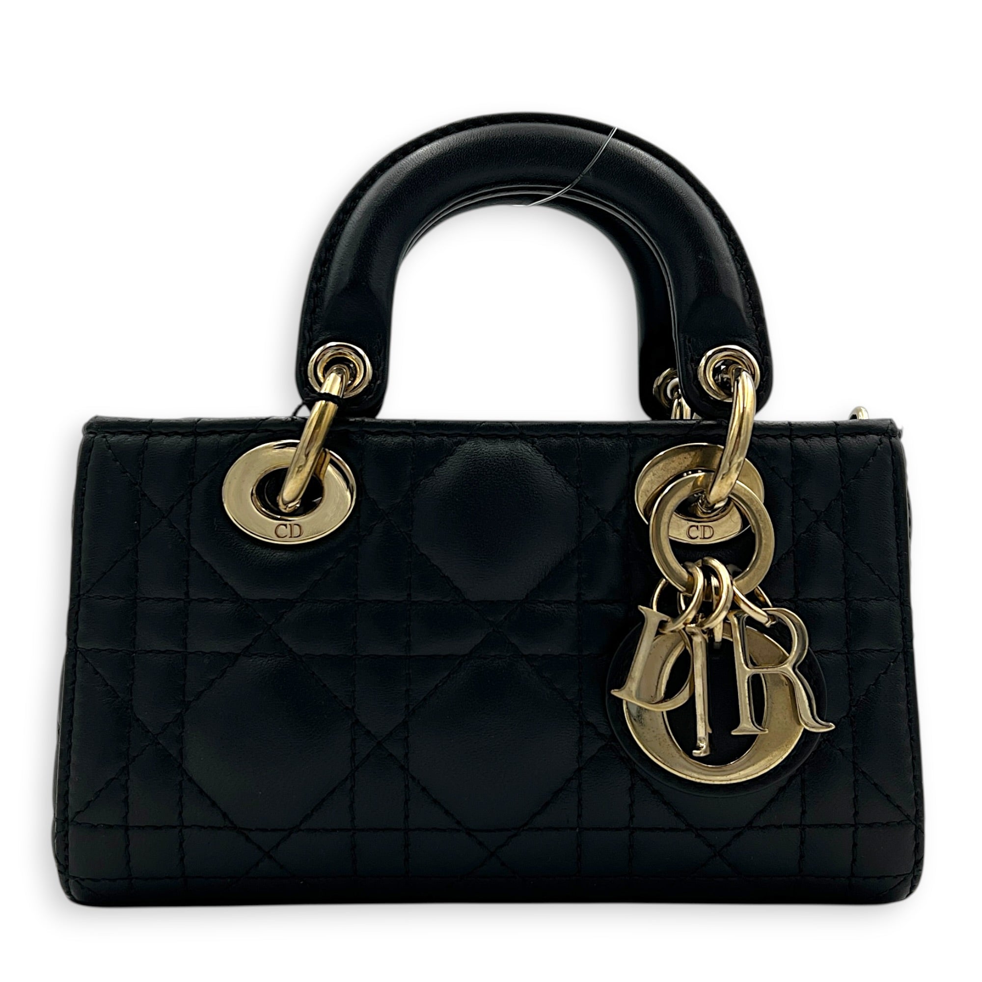 Lady D-Joy Top Handle Bag Micro Black in Lambskin, Gold hardware