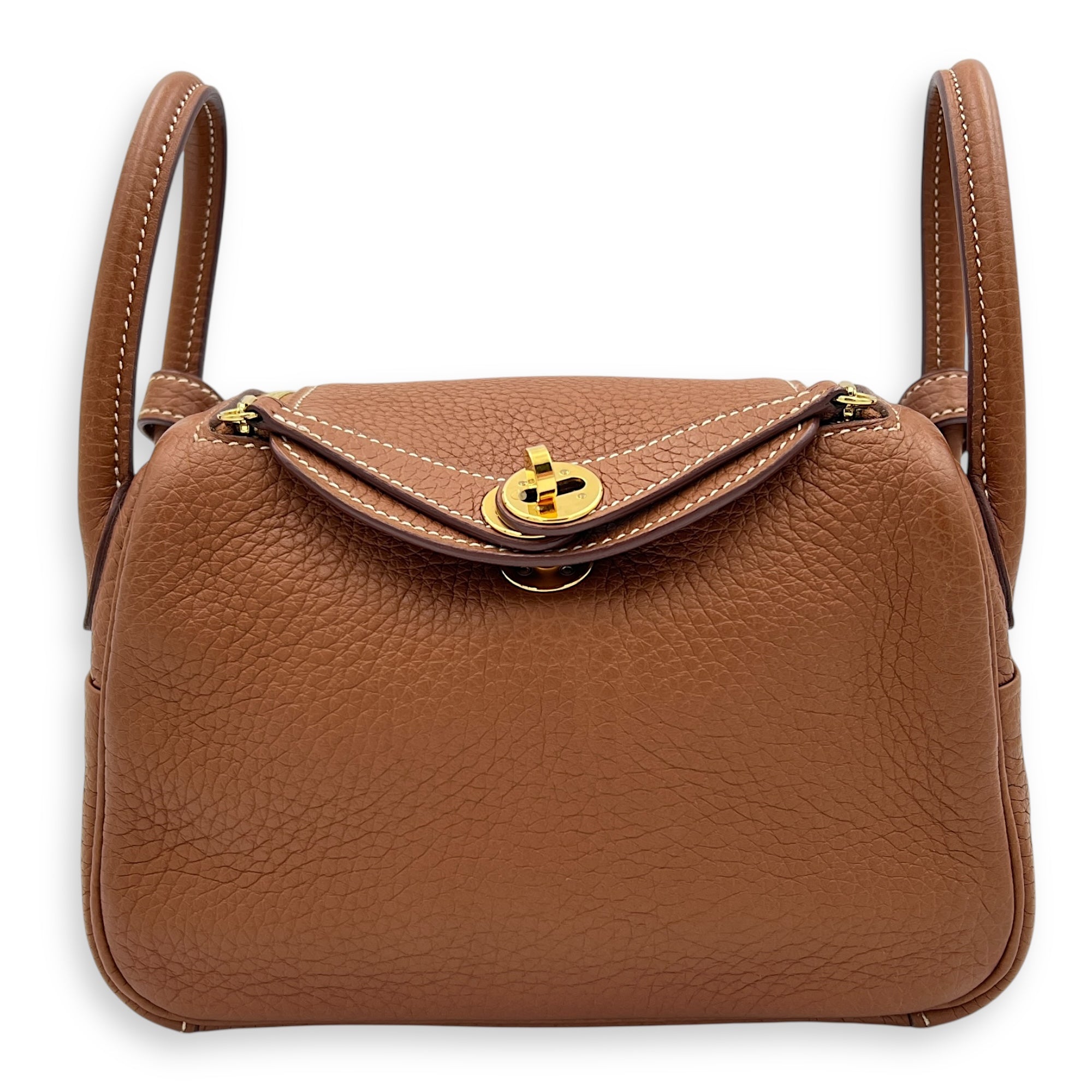 Lindy Mini Gold Shoulder Bag in Clemence, Gold hardware