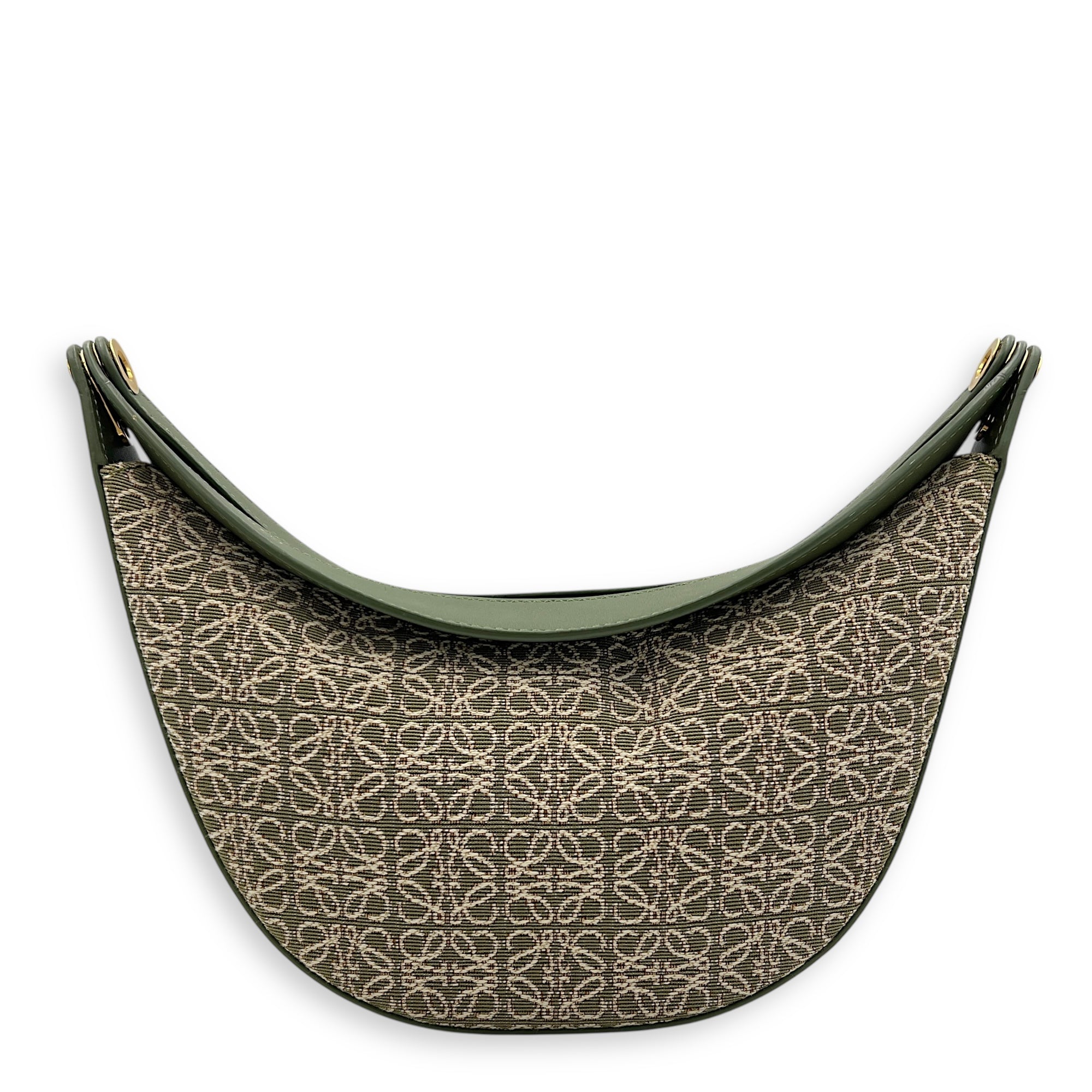 Luna Mini Green Shoulder Bag in Canvas and leather, Gold hardware