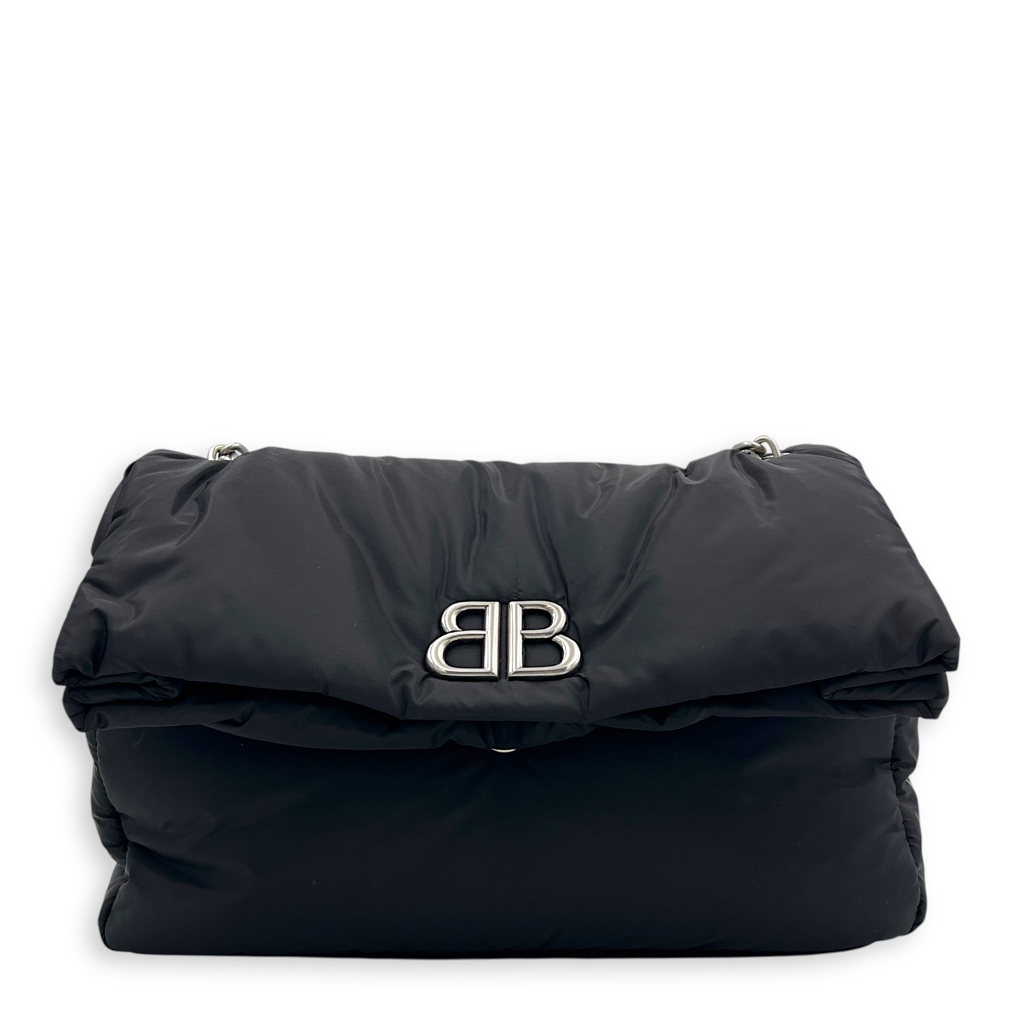 Monaco Shoulder Bag Black in Nylon, Silver hardware