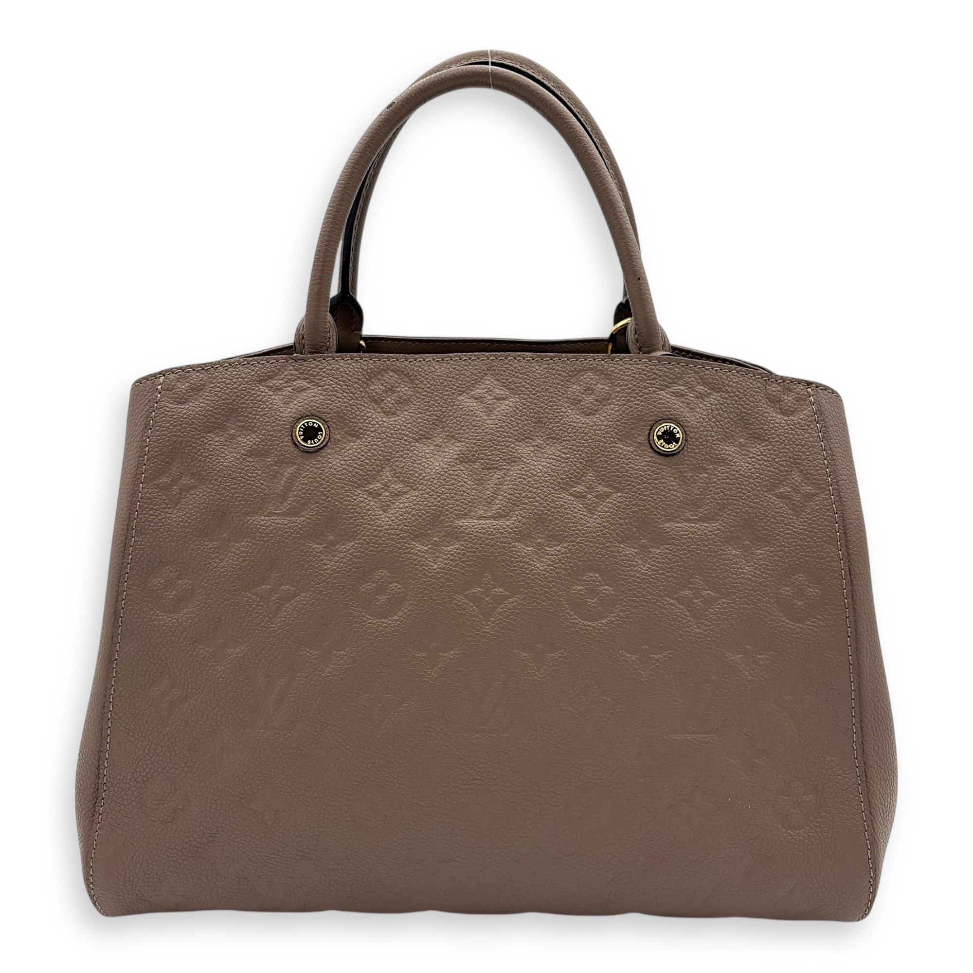 Montaigne Top Handle Bag MM Beige in Empreinte Leather, Gold hardware