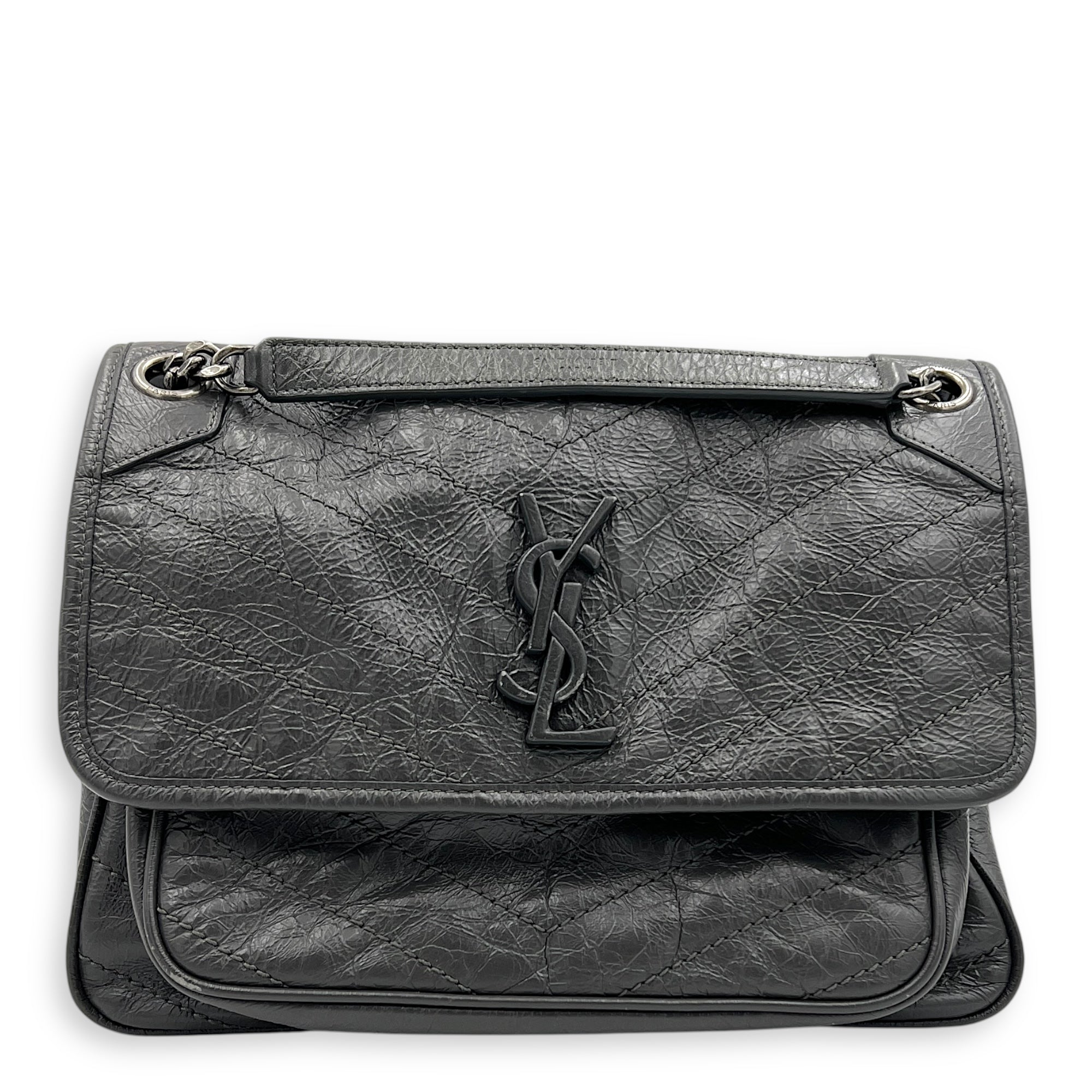 Niki Medium Grey Shoulder Bag in Calfskin, Ruthenium hardware