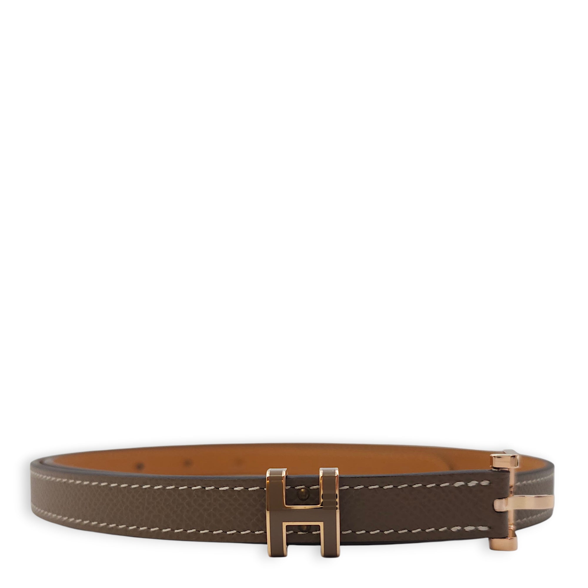 Pop H 15 Belt. Sz:80 Etoupe Belt in Epsom Rose Gold hardware CL2601-18910 3