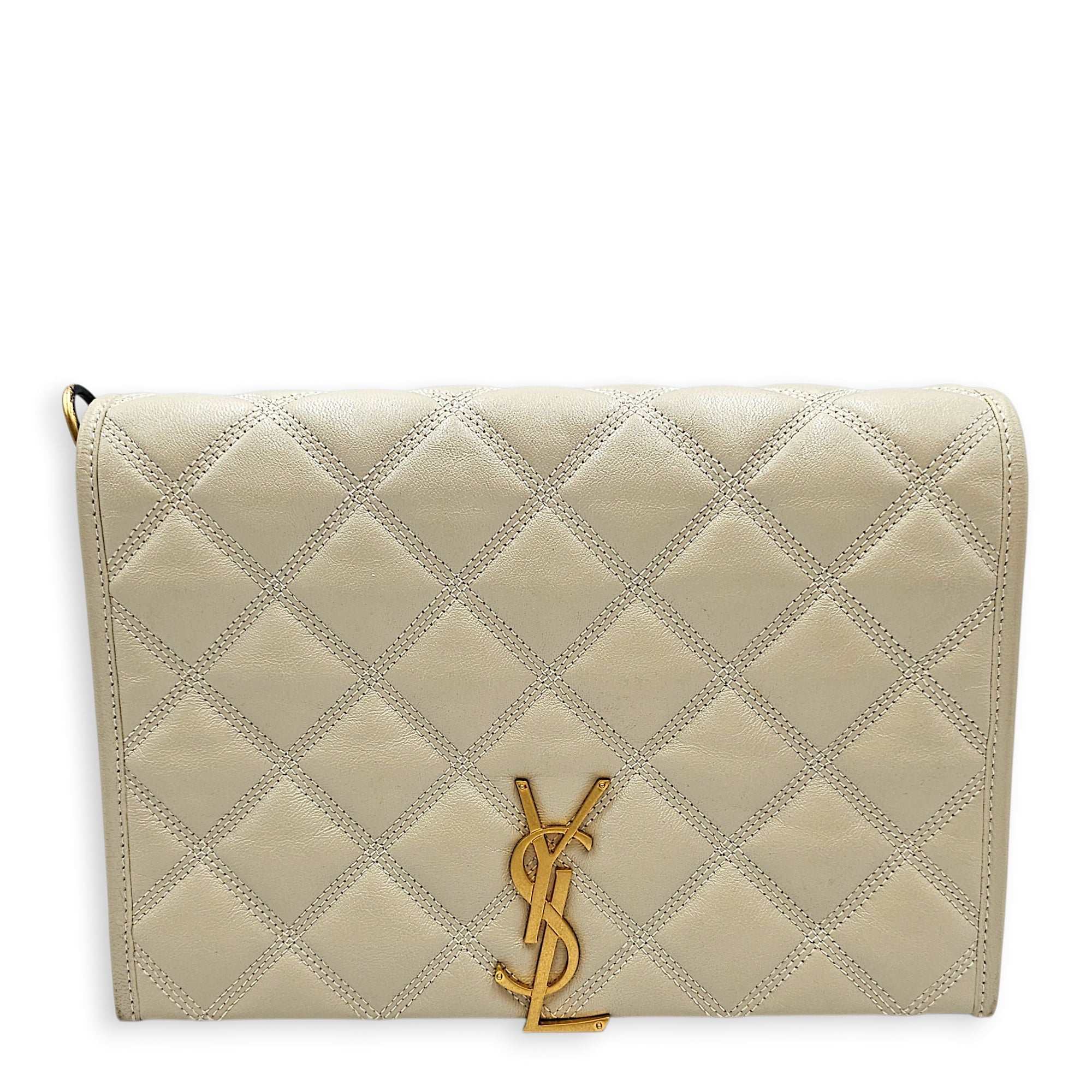Quilted Becky 25cm Beige Shoulder Bag in Calfskin Gold hardware CL2603-19865 1