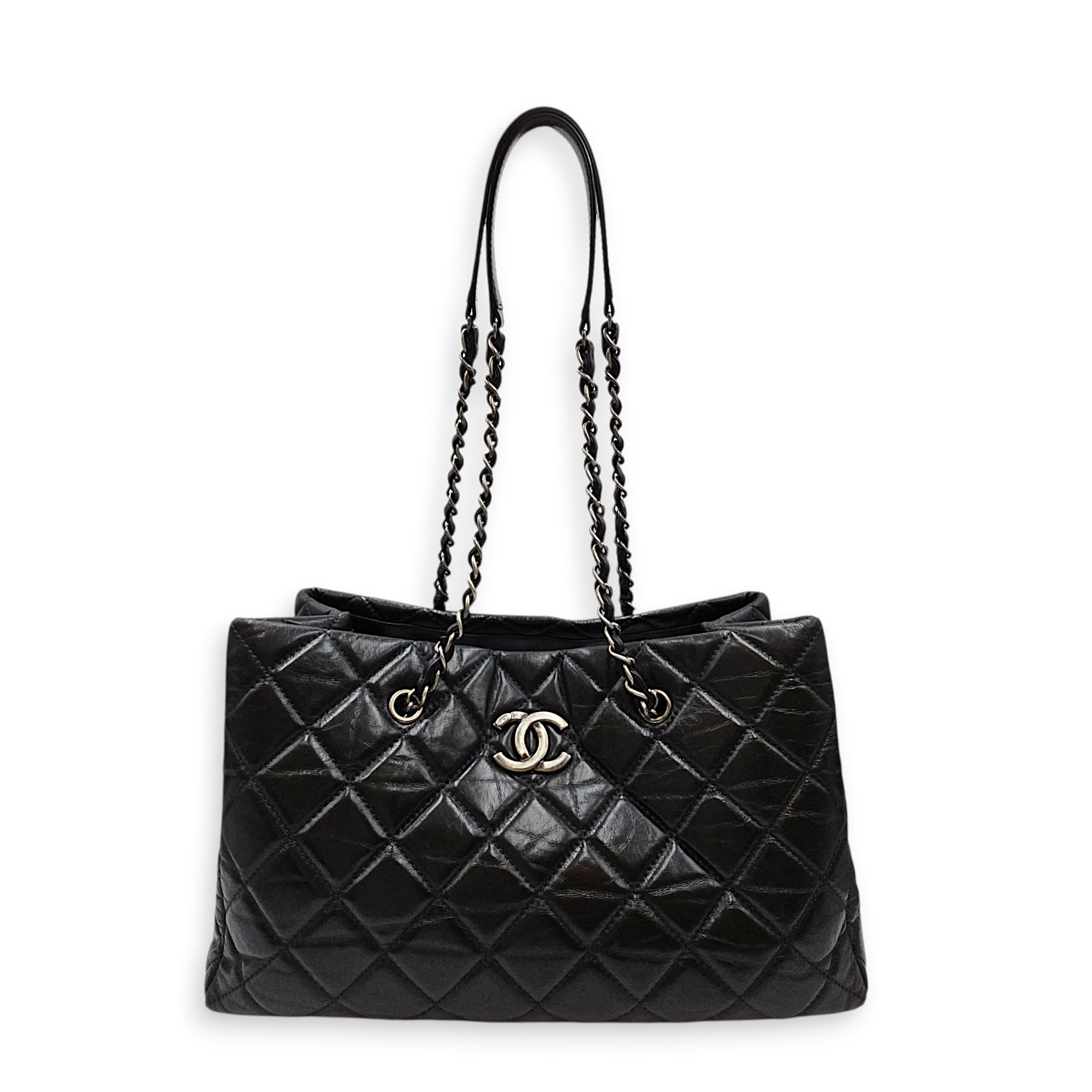 Quilted Leather Tote 35 Black Shoulder Bag in Caviar Leather Ruthenium hardware