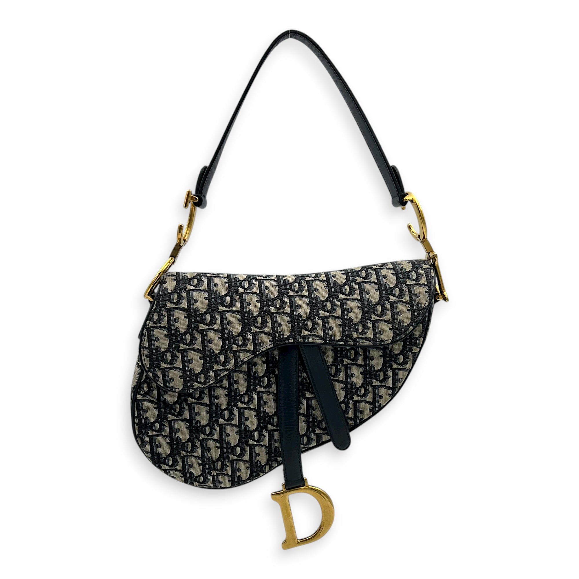 Saddle Shoulder Bag Medium Blue in Jacquard, Gold hardware