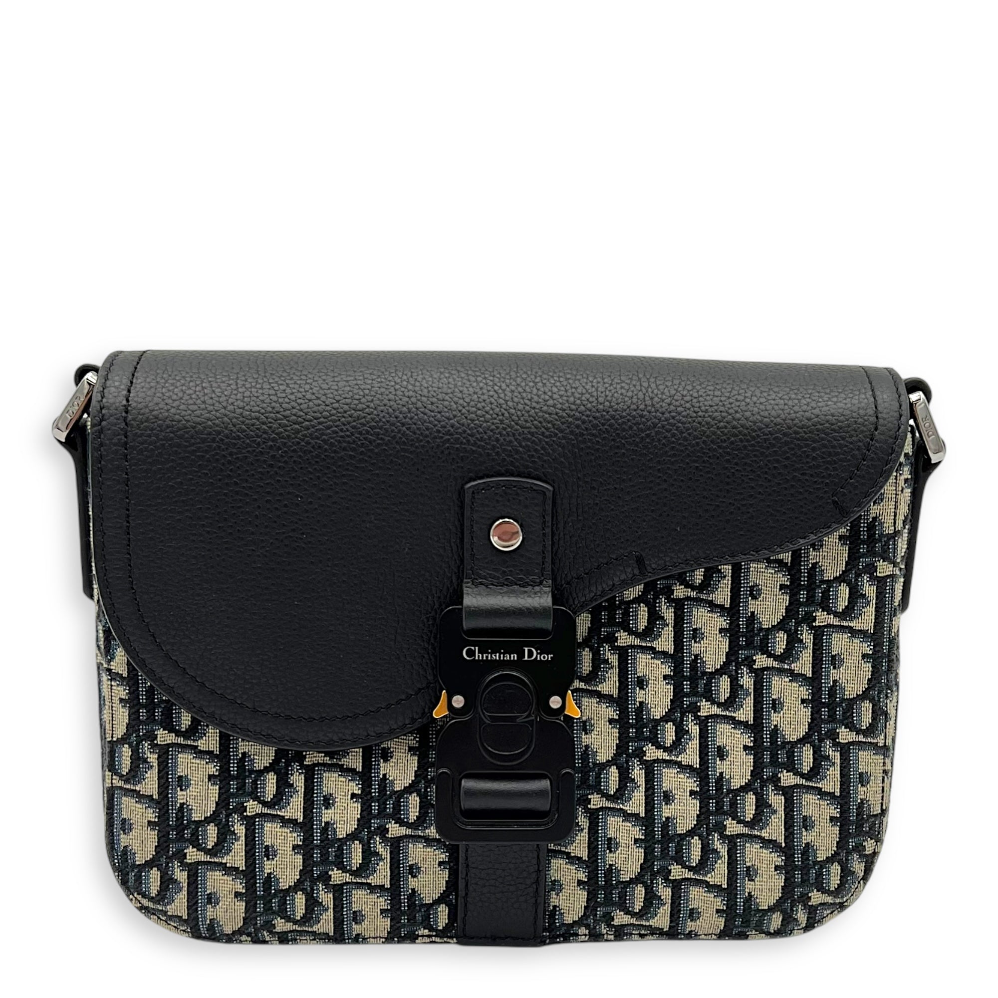Oblique Crossbody Bag Small Blue in Jacquard, Silver hardware