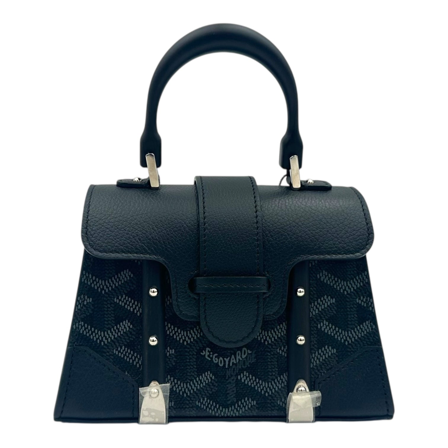 Saigon Nano Black Top Handle Bag in Coated Canvas, Silver hardware