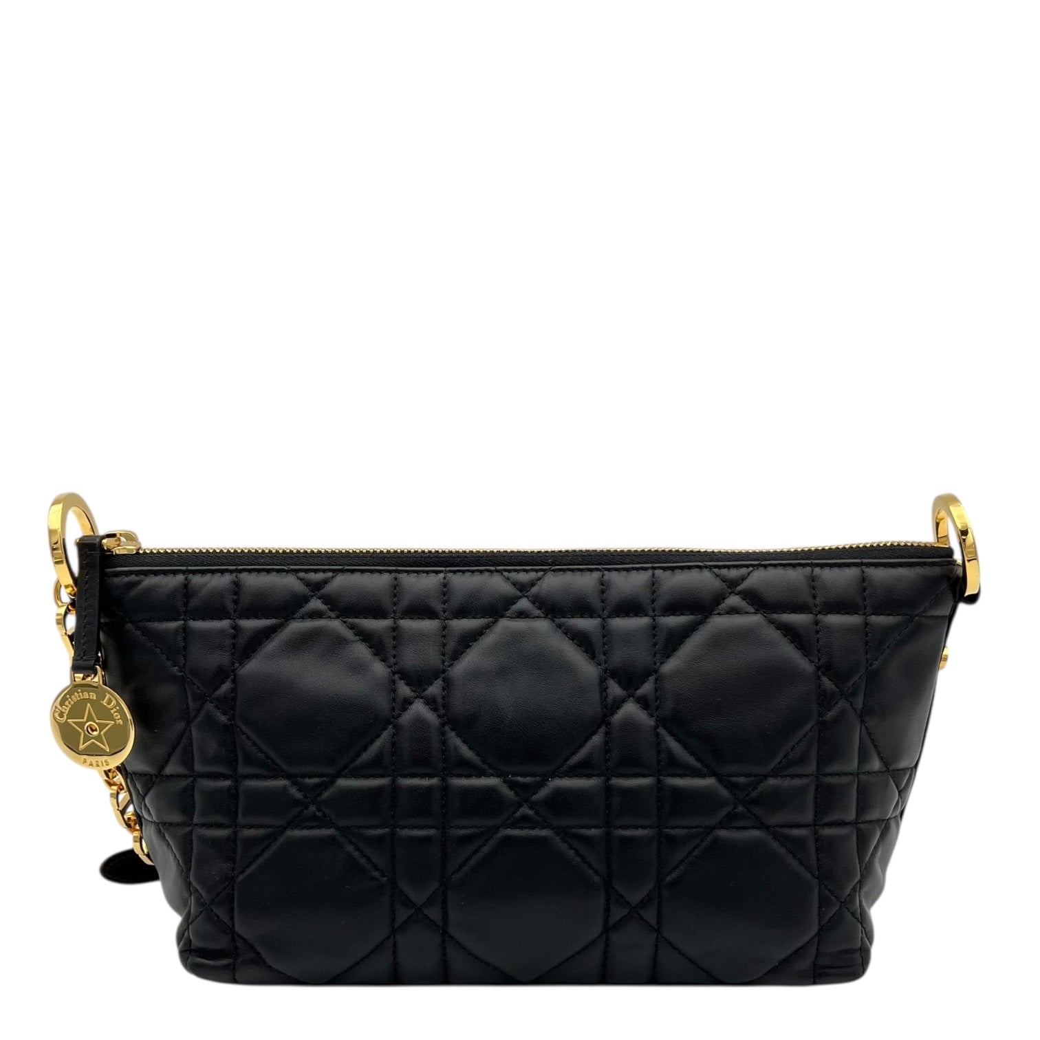 Star Chain Macrocannage Shoulder Bag Black in Calfskin, Gold hardware