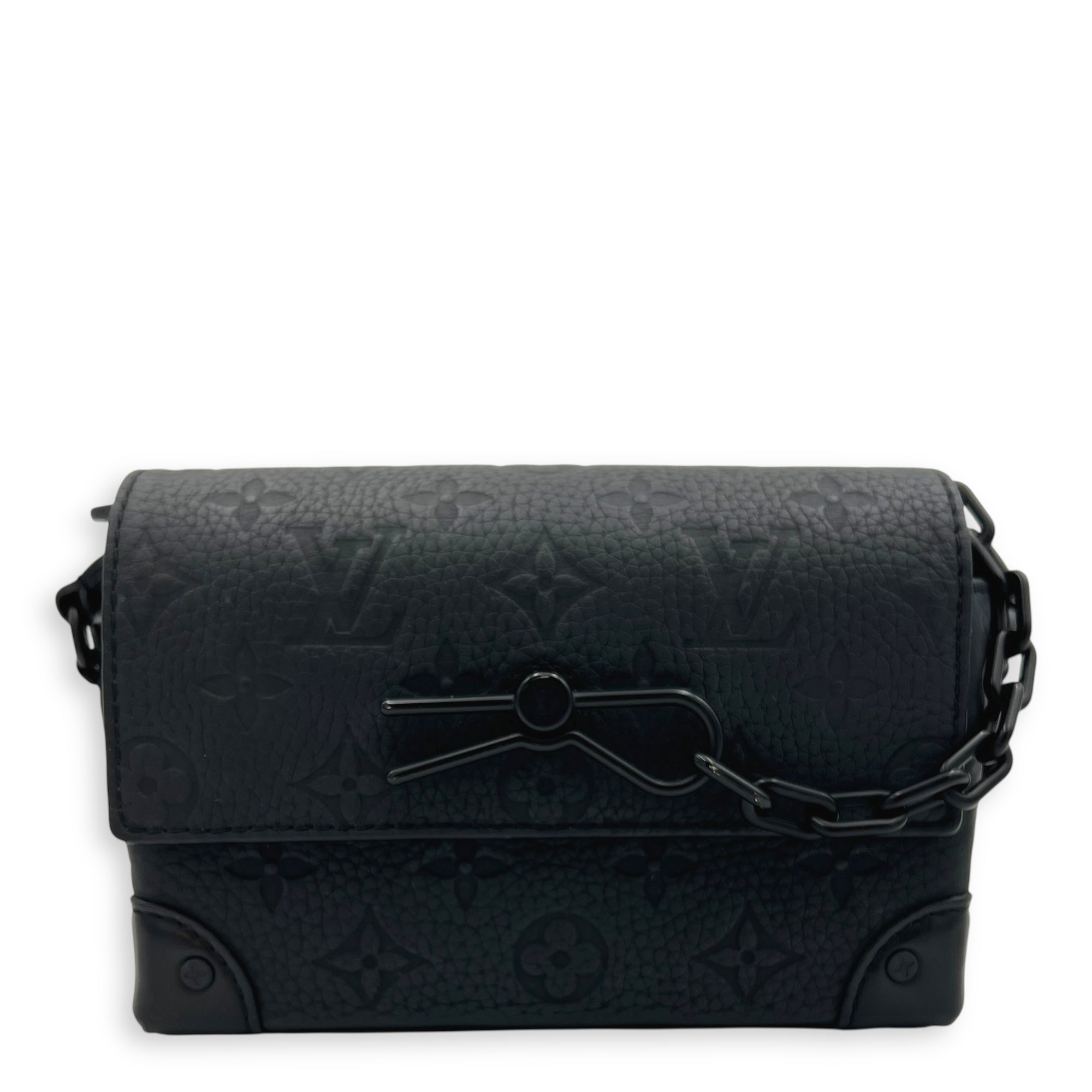 Steamer Shoulder Bag Black in Empreinte Leather, Black hardware