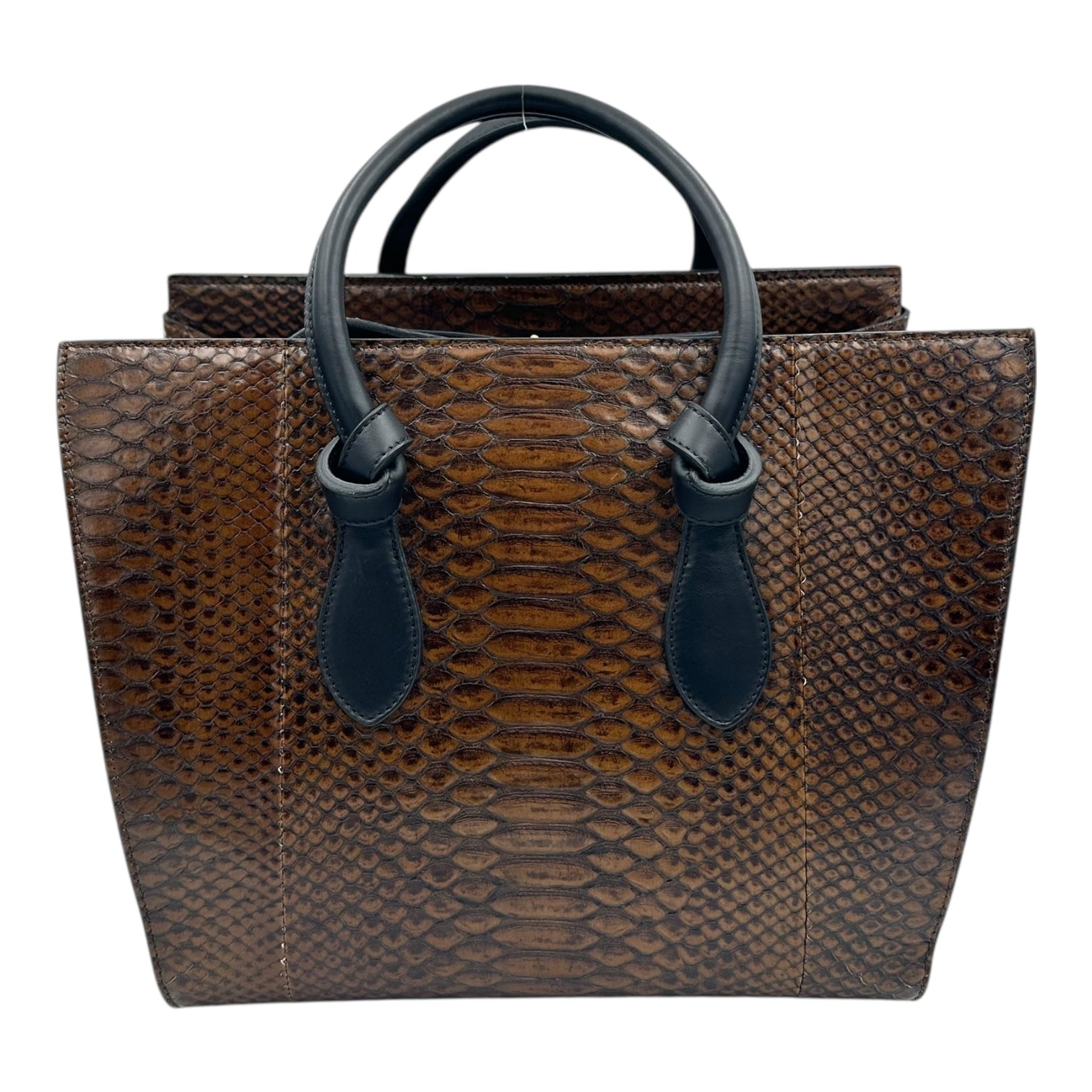 Tie Bag Top Handle Bag Brown in Snakeskin, Gold hardware