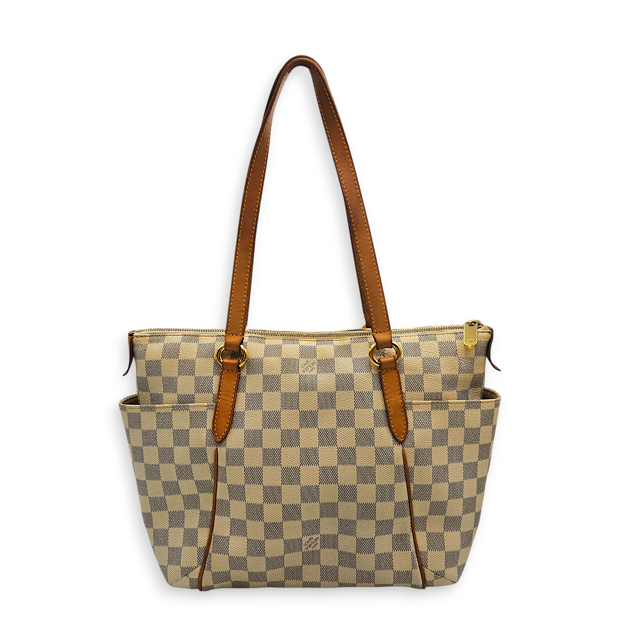 Totally Damier Azur PM White Shoulder Bag in Canvas, Gold hardware