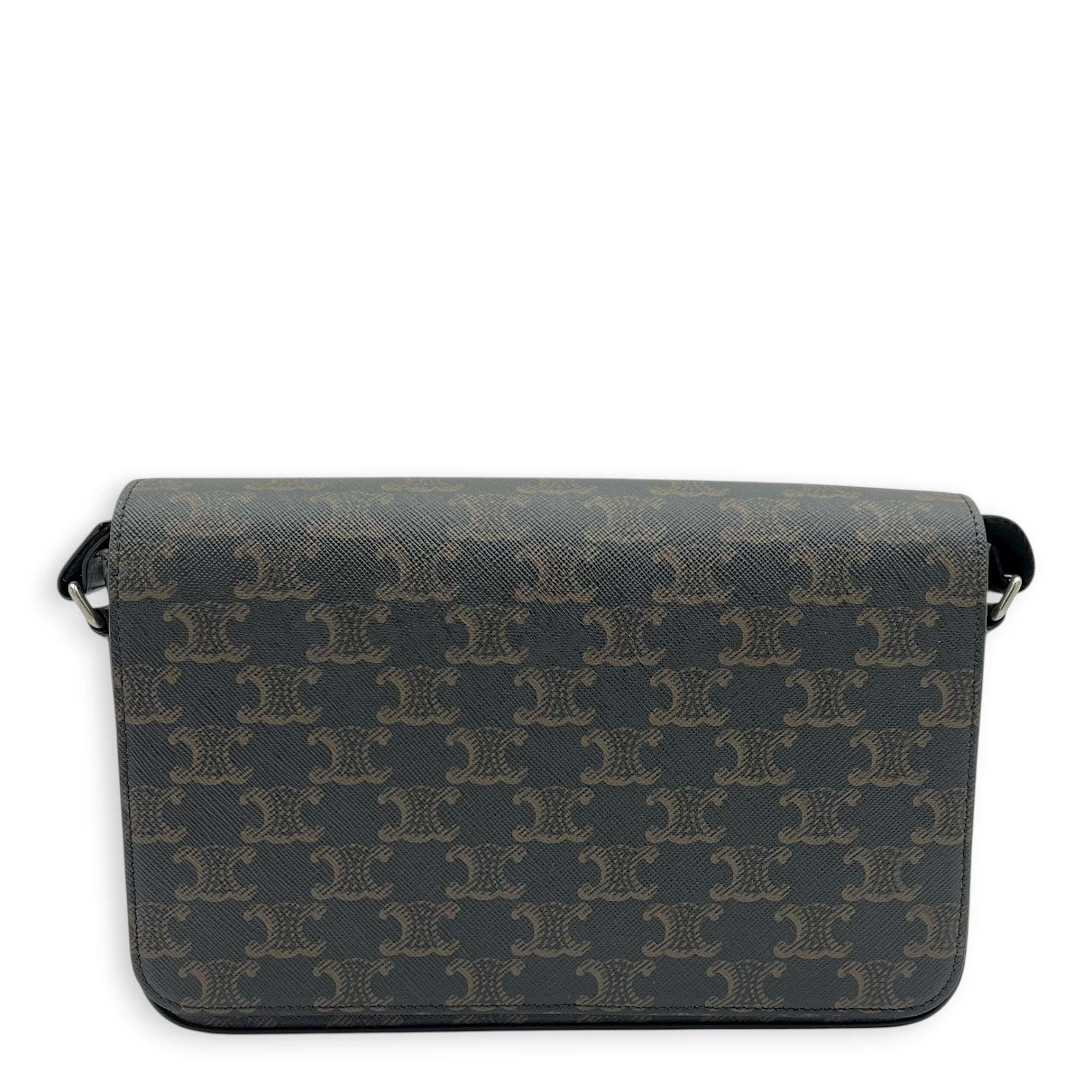 Triomphe Messenger Brown in Coated Canvas, Gold hardware