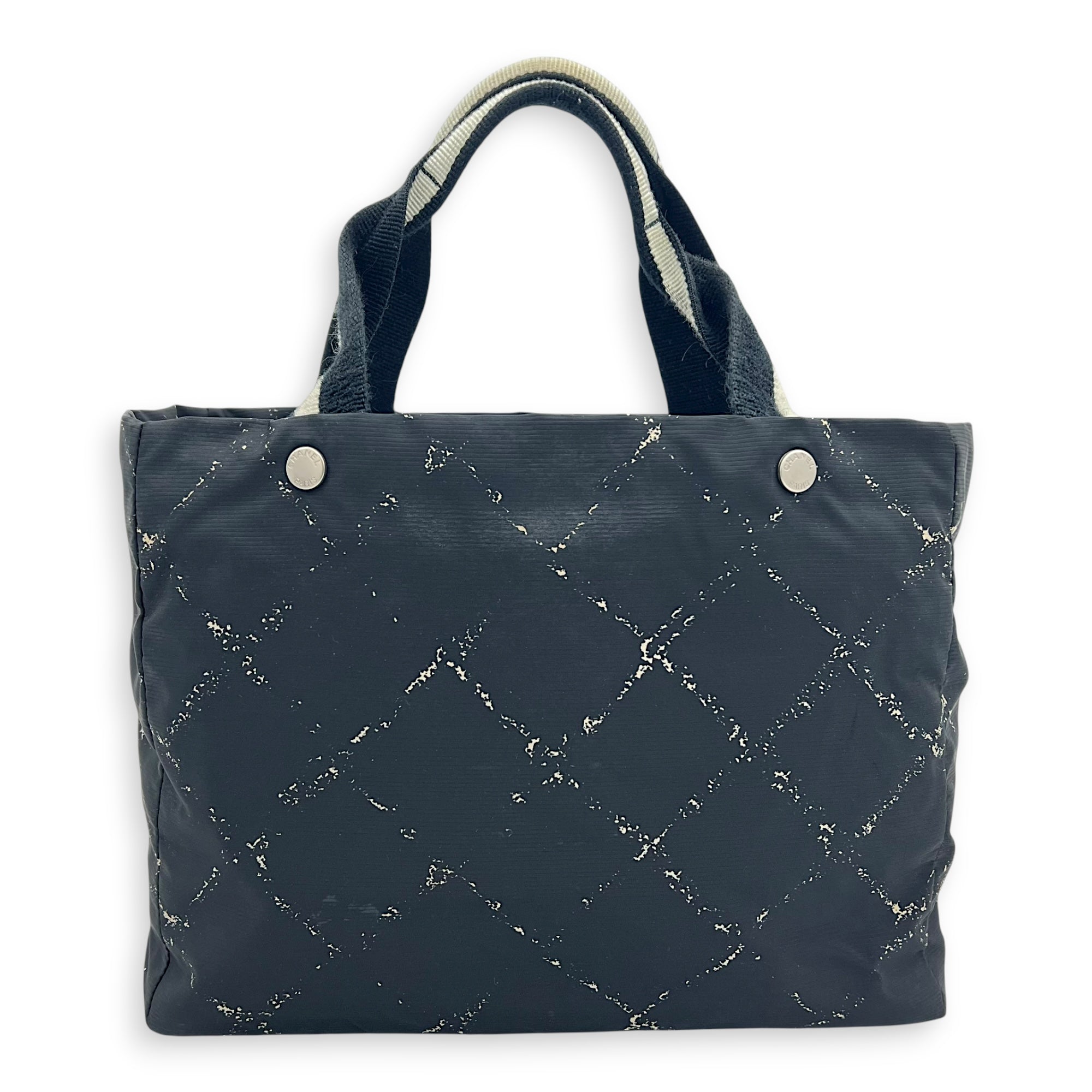 Vintage Travel Line Tote Bag Black in Nylon, Silver hardware