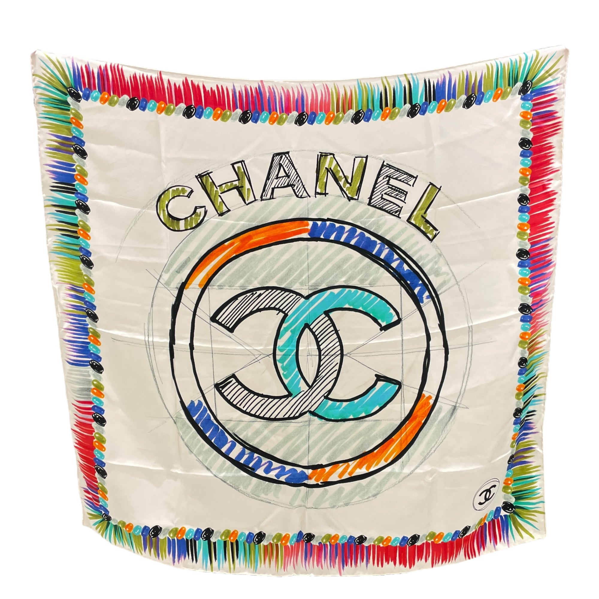 White Paint Strokes 84cm x 84cm Multi-Color Scarf in Silk